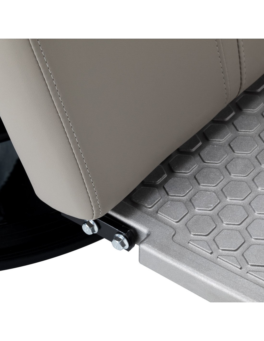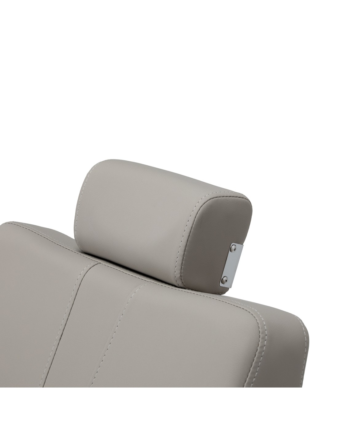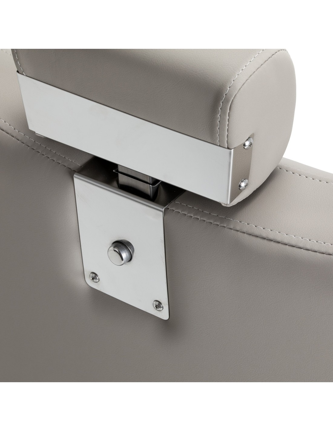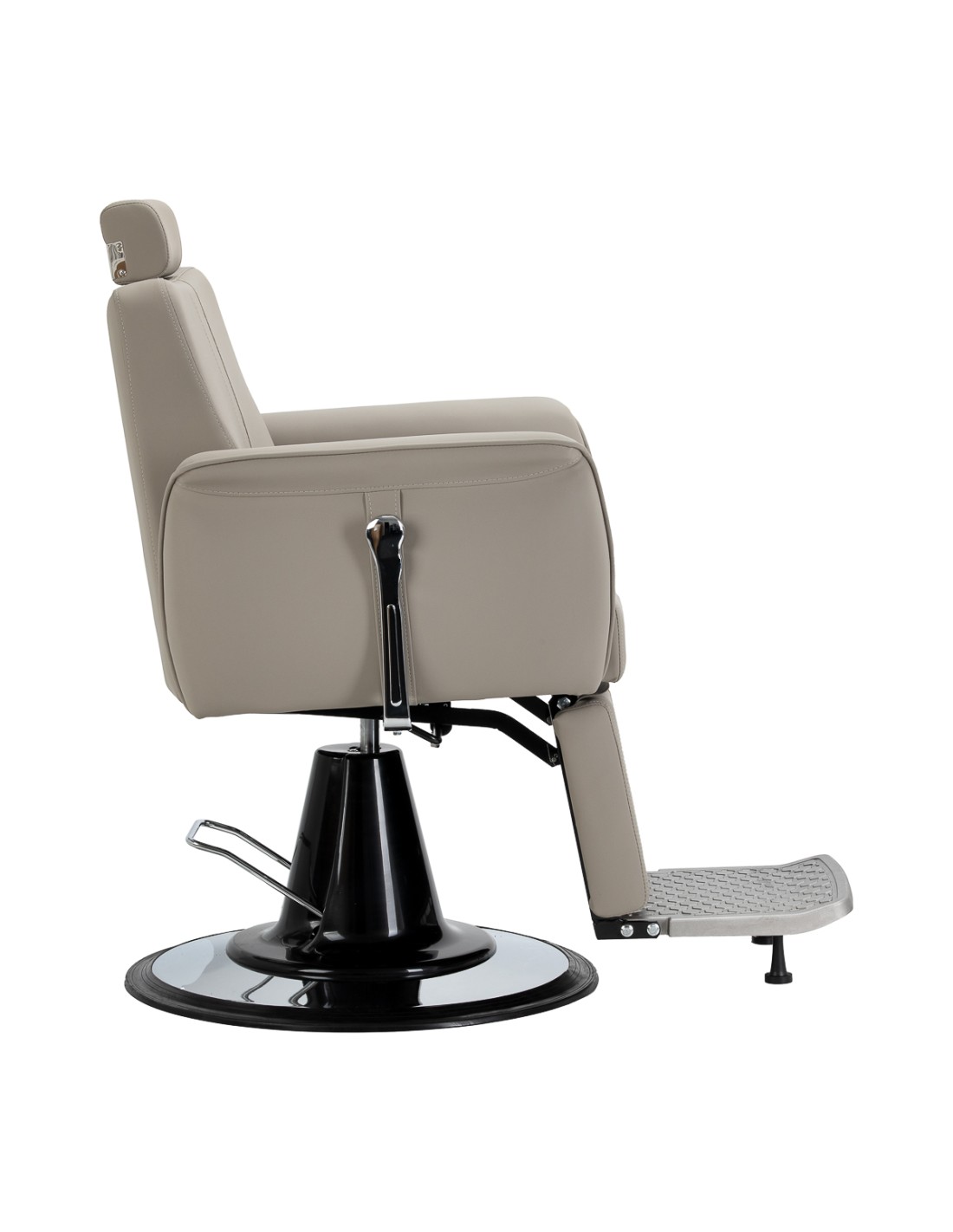 L'efficiente sollevatore idraulico consente una regolazione fluida dell'altezza del sedile nell'intervallo 55-67 cm, anche quando il cliente è già seduto sulla poltrona. Ciò garantisce condizioni di lavoro ergonomiche e facilita l'adattamento delle impostazioni all'altezza sia del cliente che del barbiere. Lo schienale reclinabile e il poggiapiedi regolabile consentono di posizionare il cliente in una comoda posizione semi-sdraiata, aumentando il comfort durante determinati servizi. Il poggiatesta regolabile garantisce un sostegno stabile per la testa e il collo.
