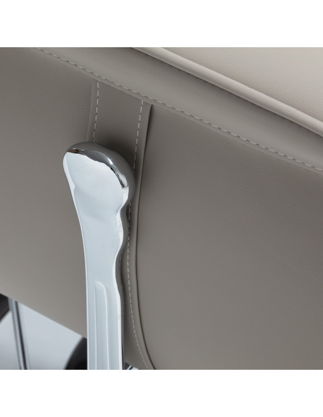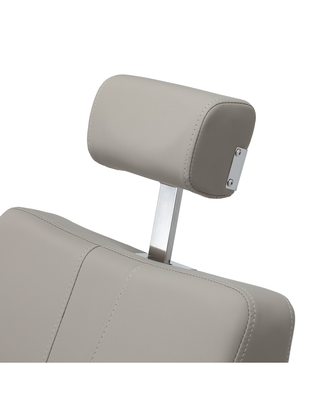 Il comodo sedile garantisce al cliente il massimo comfort durante i vari servizi. Lo schienale alto offre un solido sostegno alla schiena, favorendo una posizione comoda e stabile. Il meccanismo di rotazione completa aumenta la libertà di movimento e migliora l'organizzazione del lavoro. I braccioli imbottiti, posizionati ad un'altezza ottimale, aiutano a mantenere la corretta posizione delle braccia del cliente, riducendo la tensione nelle spalle.