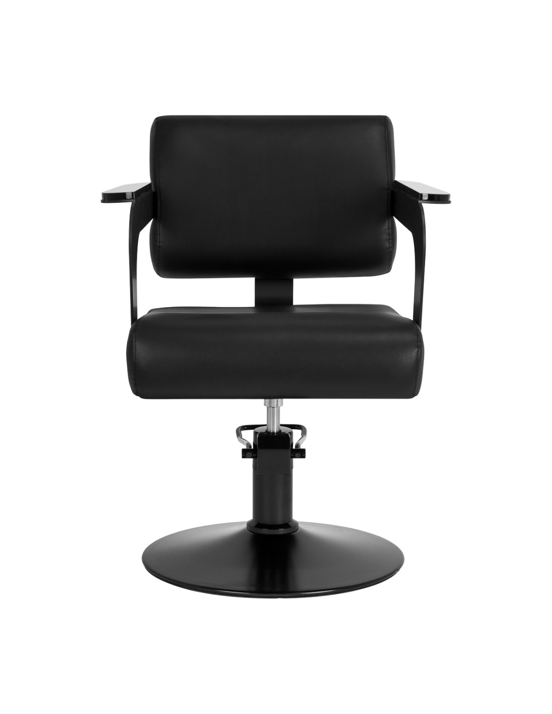 Il meccanismo di rotazione completa migliora il lavoro del parrucchiere e aumenta la libertà di movimento durante i trattamenti. La solida base a forma di cerchio garantisce stabilità durante l'uso. La comoda seduta assicura un elevato comfort di utilizzo, anche durante trattamenti di molte ore. I braccioli dalla forma moderna sono realizzati in una combinazione di metallo e acrilico con finitura semitrasparente. Gli elementi strutturali a vista conferiscono alla poltrona un carattere originale. L'altezza adeguata dei braccioli favorisce la posizione naturale delle spalle del cliente, il che influisce positivamente sul comfort durante il taglio e lo styling.