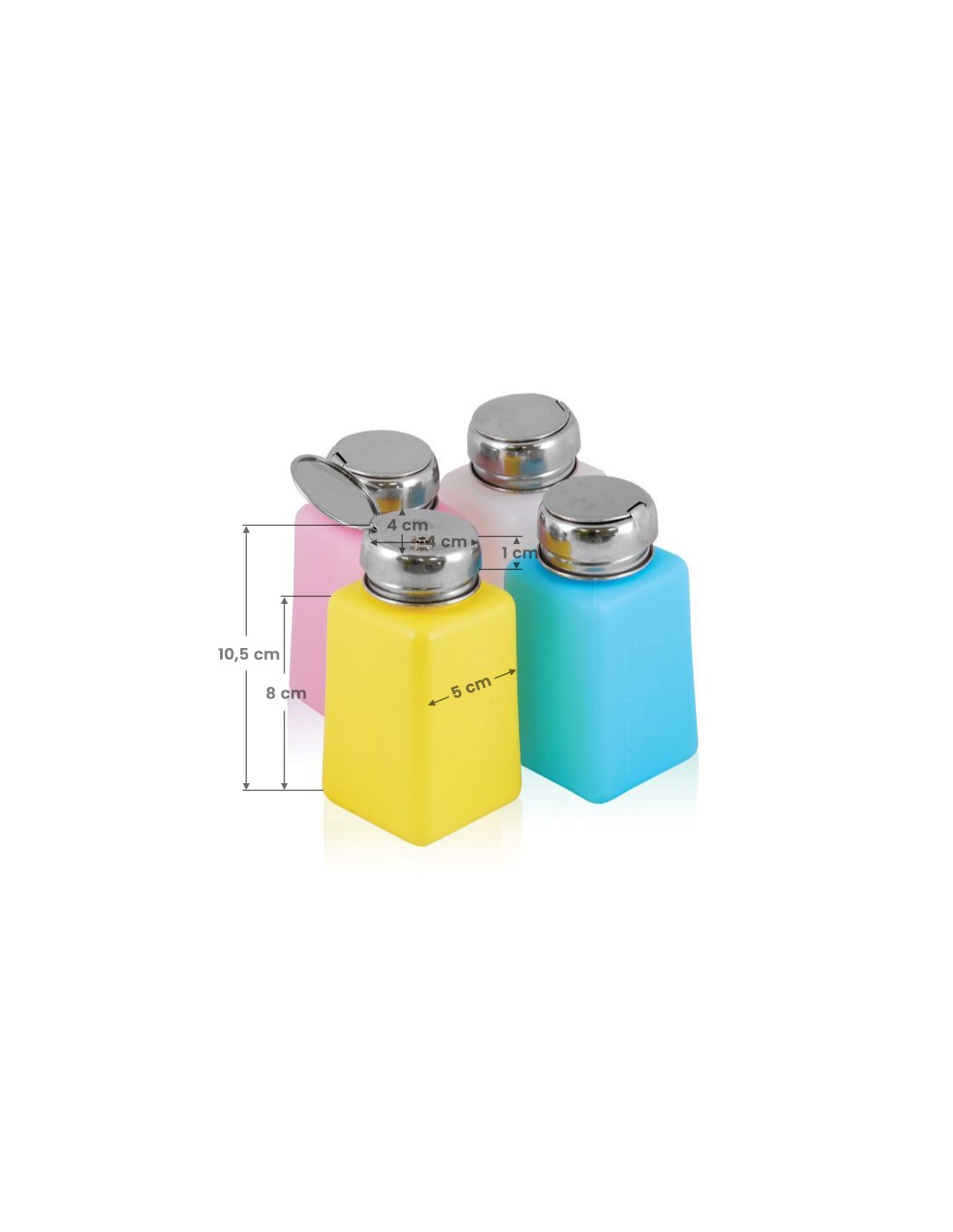 Flacone con pompa in metallo e contenitore in plastica da 180 ml, per tutti i liquidi. Facilita notevolmente il lavoro, grazie alla comoda applicazione dei liquidi su un tampone cosmetico o un cotton fioc, indispensabile in ogni studio. Prodotto confezionato in modo casuale.