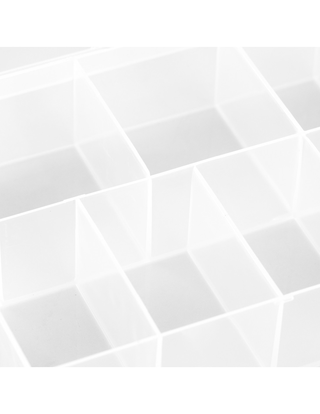 Il funzionale organizer con undici scomparti numerati tiene in ordine tutti i piccoli accessori per la ricostruzione delle unghie e l'estensione delle ciglia. I contenitori di dimensioni diverse consentono di conservare nail art e nail tips di dimensioni diverse. La scatola è adatta anche per contenere piccoli accessori per altri trattamenti cosmetici e, grazie alla chiusura, i prodotti non fuoriescono durante il trasporto.