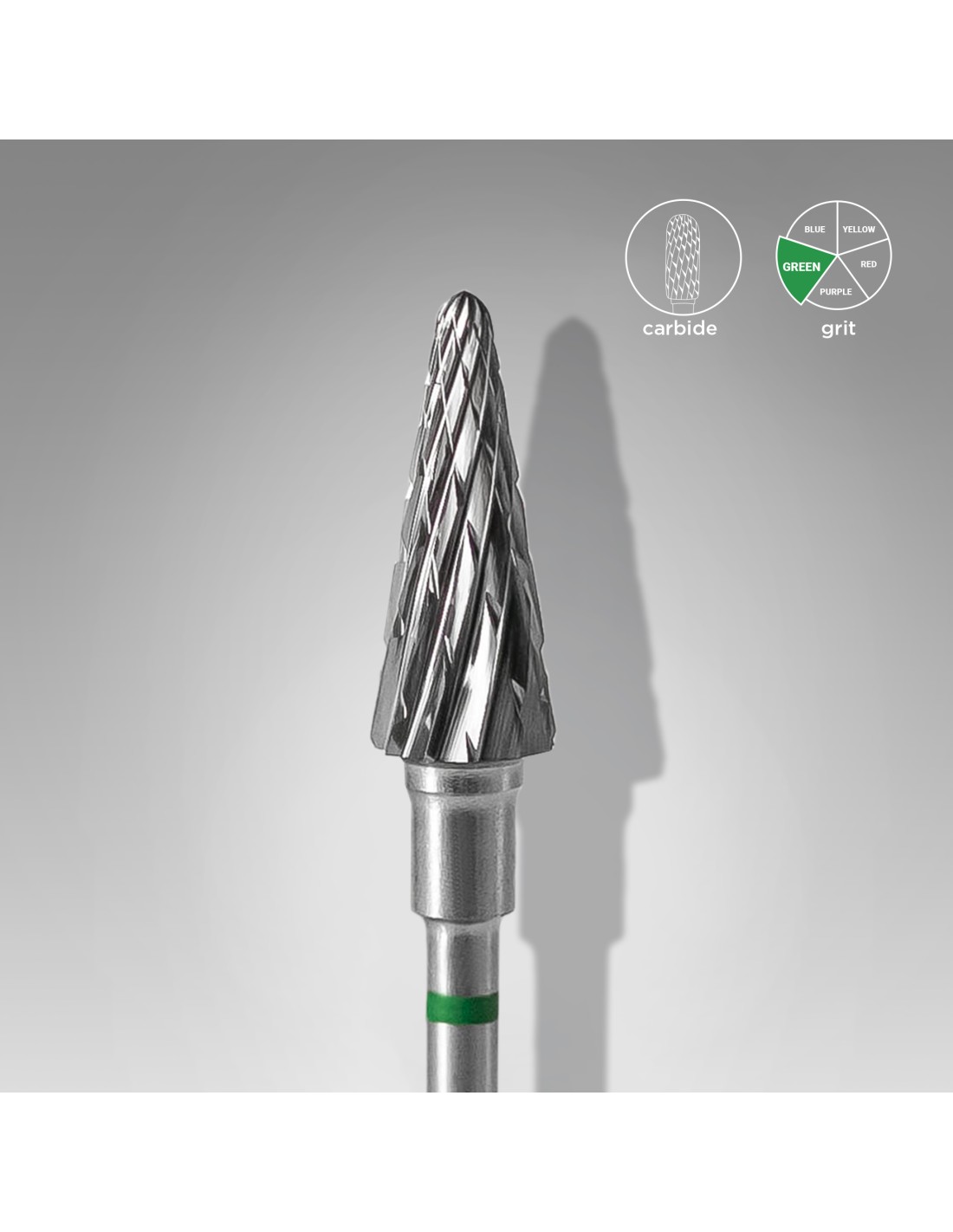 Punta in carbine a cono, grana grossa per rimozione gel, MODELARE TUNNEL. Anello verde.