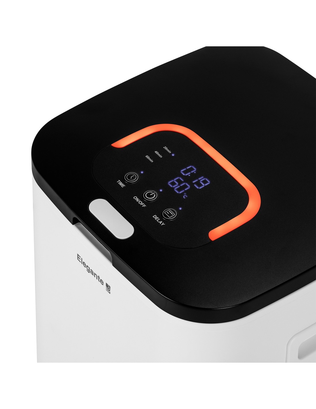 L'apparecchio si riscalda rapidamente per essere pronto all'uso in pochissimo tempo. Lo scaldino è dotato di una funzione timer che consente di impostare il tempo di funzionamento per: 20, 40 o 60 minuti, dopodiché il riscaldamento si interrompe. Il chiaro display conta il tempo rimanente e indica la temperatura all'interno dell'apparecchio. La funzione di avvio ritardato consente di programmare l'accensione - l'impostazione può essere regolata con incrementi di 30 minuti fino a un massimo di 24 ore. Una volta trascorso il tempo di ritardo, l'apparecchio inizia a riscaldare secondo l'orario impostato.
