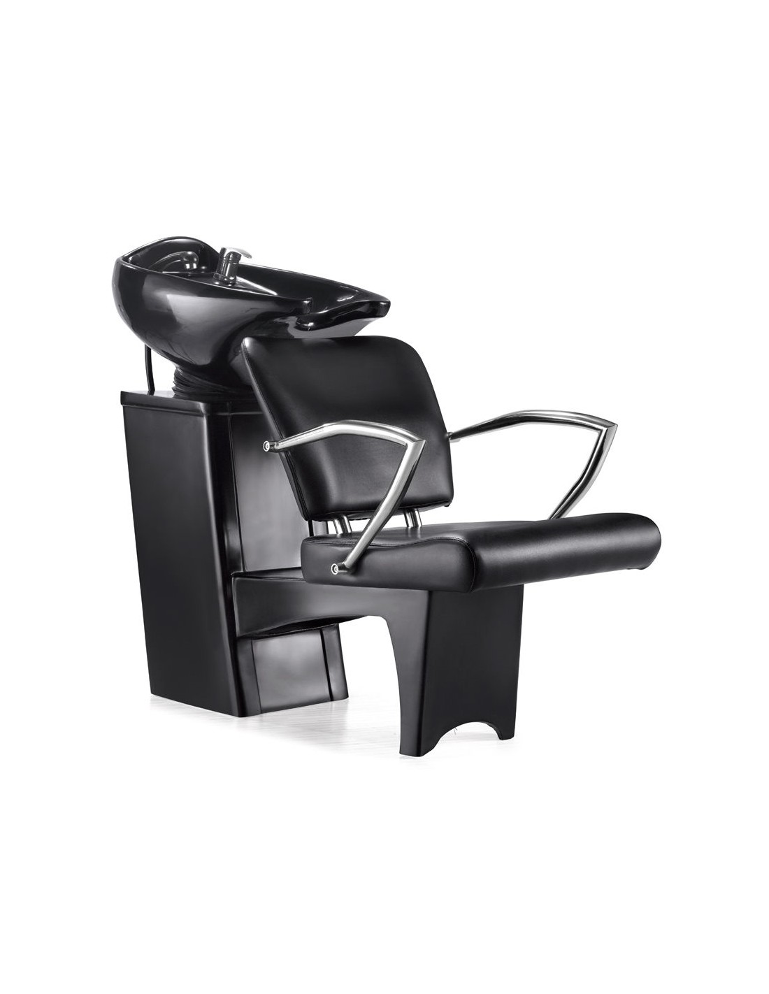 Un moderno lavabo per parrucchieri di Gabbiano: una combinazione di funzionalità ed eleganza italiana. Il lavabo è realizzato con materiali di alta qualità e perfettamente rifinito. Sappiamo quanto sia importante il comfort del cliente durante i trattamenti, perciò la speciale struttura offre al cliente un solido sostegno per la testa durante il lavaggio. La seduta, morbida e confortevole, è rivestita in ecopelle di alta qualità. Il nero in contrasto con la tonalità metallica dei braccioli rende questo autolavaggio un elemento universale, che si adatta a quasi tutti gli interni, indipendentemente dalla loro combinazione di colori.