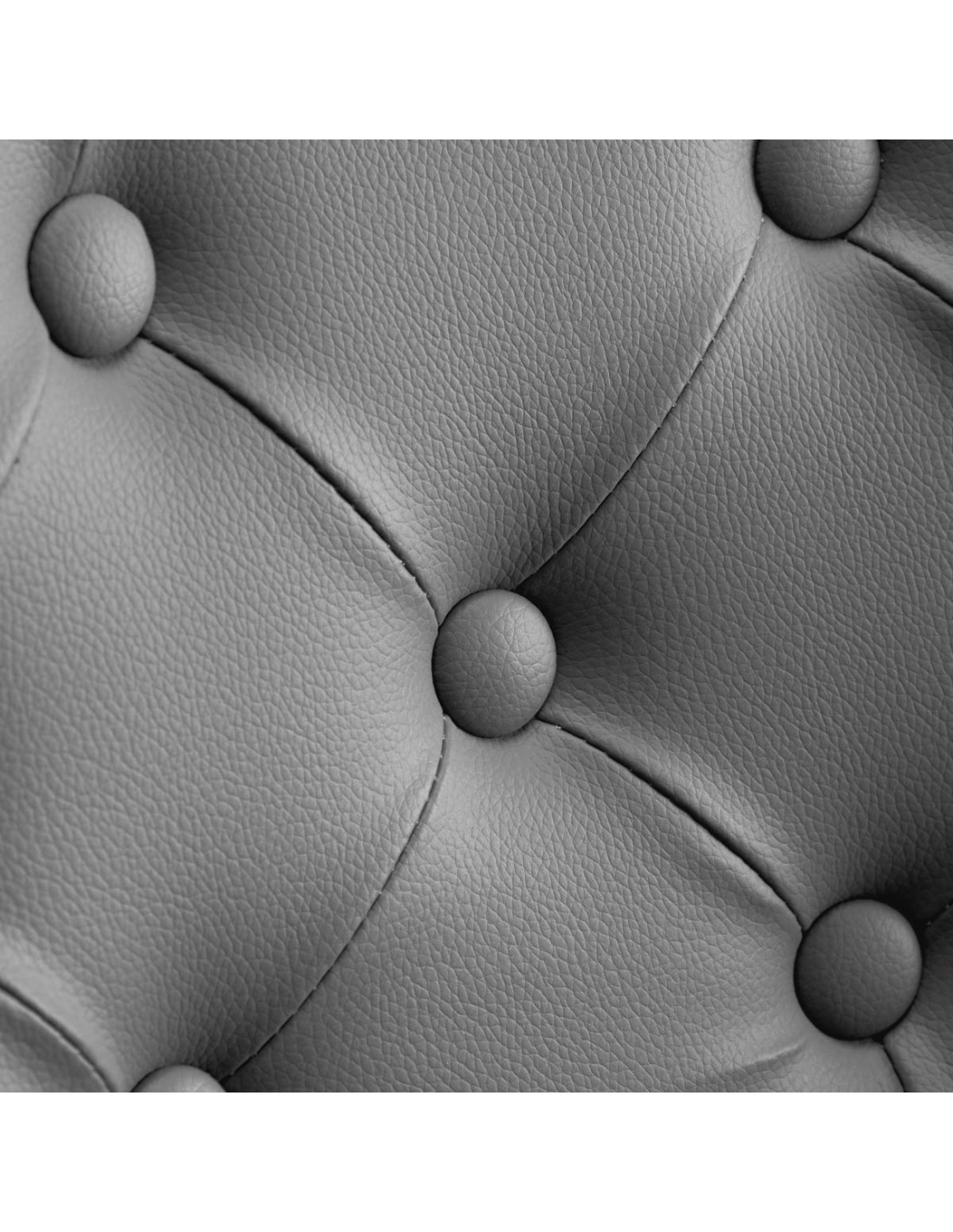 La poltrona è imbottita di schiuma, che è resistente e non si deforma, garantendo un uso confortevole per lungo tempo. Il rivestimento è in similpelle piacevole al tatto con una struttura specifica. Grazie all'uso di questo materiale, l'attrezzatura è resistente all'umidità, durevole e facile da pulire. Il rivestimento nei toni del grigio e le superfici metalliche decorative laccate in oro gli conferiscono un'espressione di eleganza senza tempo. Si distingue per la finitura di gusto, che le conferisce un carattere esclusivo e la rende perfetta per molti saloni professionali.