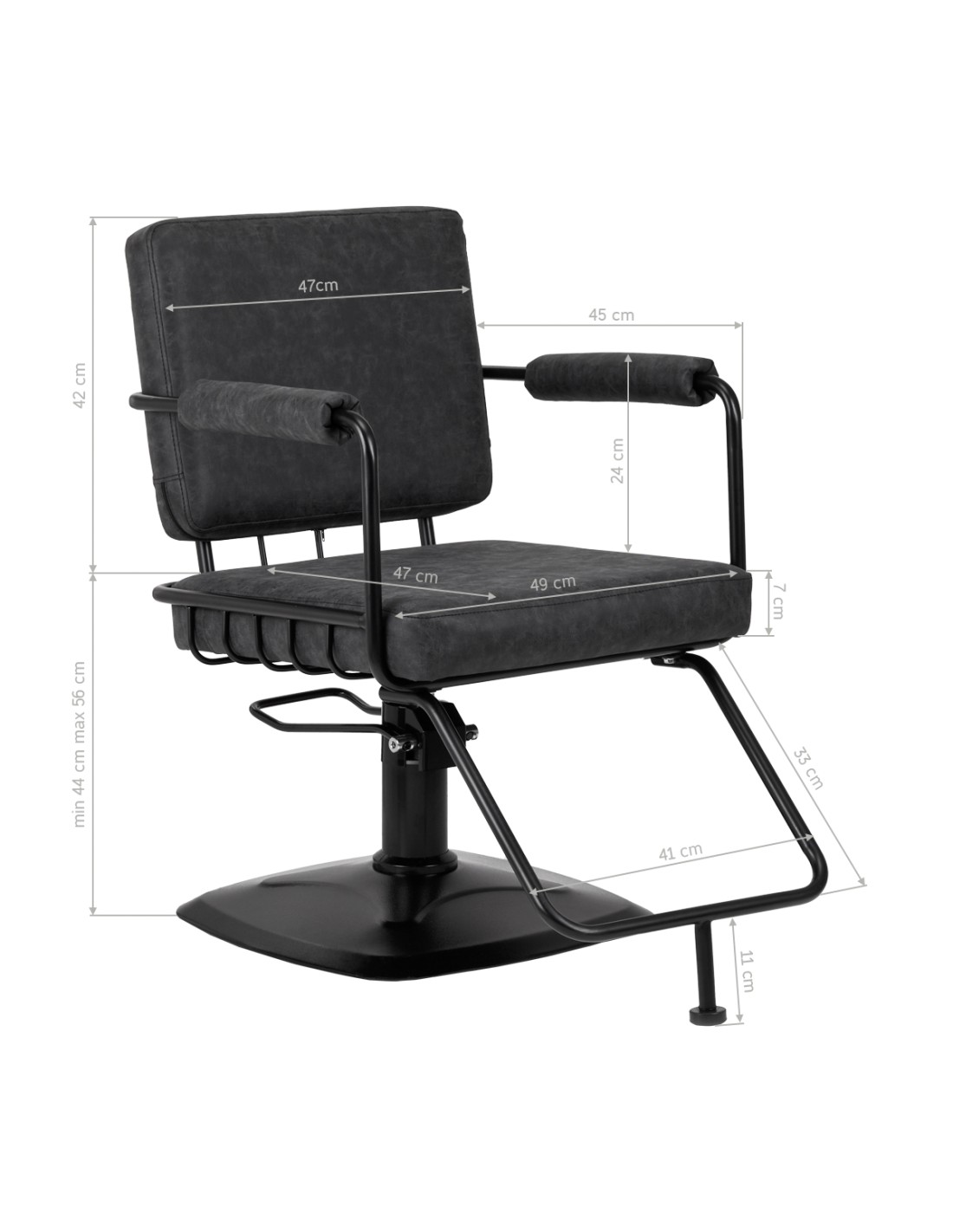 La solida base di forma quadrata garantisce stabilità durante l'uso. La superficie liscia rende questo elemento facile da mantenere pulito. L'ampia seduta con imbottitura in schiuma assicura un elevato comfort d'uso e comodità anche durante le lunghe ore di trattamento. L'equipaggiamento della poltrona con un meccanismo girevole completo rende il lavoro del parrucchiere più efficace e confortevole. I braccioli parzialmente imbottiti si trovano all'altezza giusta, consentendo di posizionare correttamente le spalle del cliente - evitando che si nasconda la testa tra le braccia o si ingobbi - e facilitando notevolmente l'esecuzione di trattamenti precisi, compresi i tagli di capelli. Un plus significativo è il poggiapiedi dedicato a questo modello, che fornisce un supporto stabile per i piedi dell'utente.