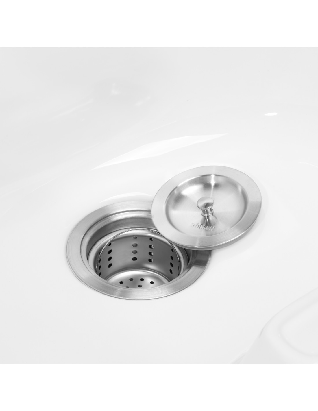 La profondità del lavaboin ceramica nei toni del bianco consente di eseguire in modo confortevole ed efficace un'ampia gamma di servizi per parrucchieri, evitando schizzi eccessivi di acqua e prodotti utilizzati durante il trattamento. Il materiale utilizzato rende il lavabo durevole, resistente alle macchie e ai graffi e molto facile da mantenere pulito. La flangia opportunamente sagomata garantisce il comfort durante il lavaggio dei capelli. L'utilizzo di uno speciale supporto nella bacinella assicura un sostegno adeguato alla testa, in modo che il suo peso non gravi sul collo. Questa soluzione innovativa evita tensioni e fastidi nella zona del collo e garantisce un elevato livello di comfort anche durante i trattamenti più lunghi. Inoltre, grazie al comodo rivestimento in plastica nera, il cliente non si sentirà a disagio per la freddezza della superficie in ceramica.