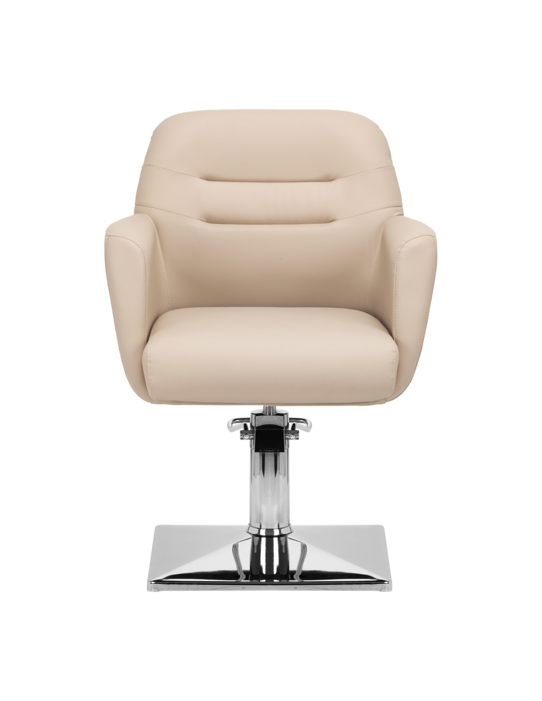 La solida base rettangolare garantisce stabilità durante l'uso. La superficie liscia con finitura a specchio rende l'elemento facile da mantenere pulito. Il sedile con imbottitura in schiuma assicura un elevato comfort di utilizzo e comodità anche durante le lunghe ore di trattamento. Il meccanismo di rotazione completa rende il lavoro del parrucchiere più efficiente e confortevole. I braccioli, posizionati alla giusta altezza, consentono di posizionare correttamente le spalle del cliente - in modo che questi non nasconda la testa tra le braccia o si abbassi - facilitando notevolmente l'esecuzione di trattamenti precisi, compresi i tagli di capelli.