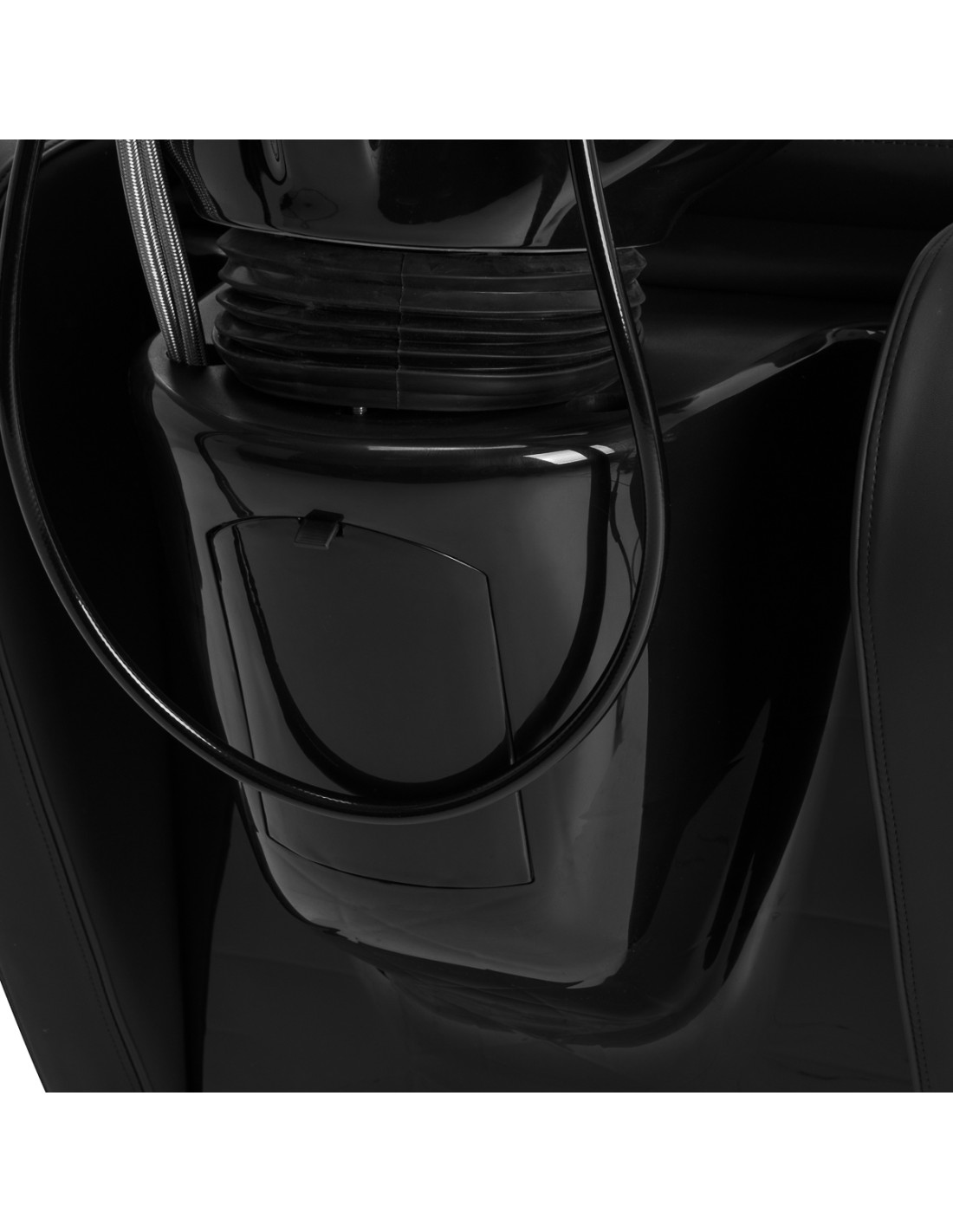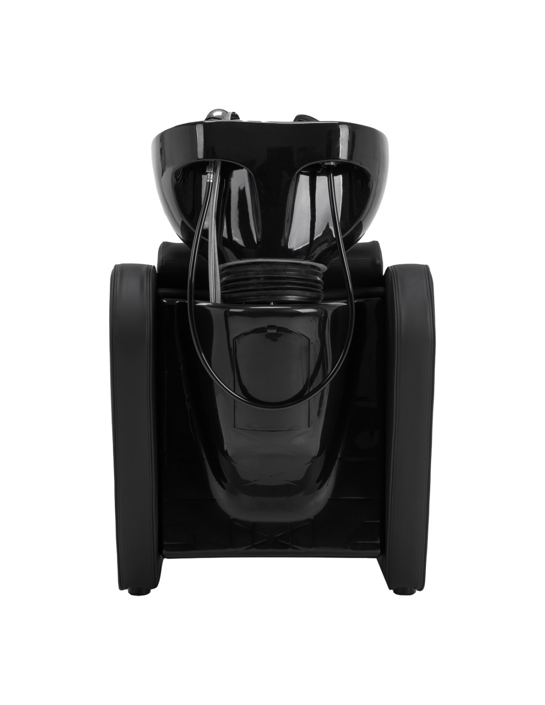 La profondità del lavabo in ceramica nera consente di eseguire in modo confortevole ed efficace un'ampia gamma di servizi per parrucchieri, evitando schizzi eccessivi di acqua e prodotti utilizzati durante il trattamento. Il materiale utilizzato rende il lavabo durevole, resistente alle macchie e ai graffi e molto facile da mantenere pulito. La flangia opportunamente sagomata e lo schienale inclinato offrono sostegno e comfort durante il lavaggio dei capelli e, grazie al comodo rivestimento in plastica nei toni del nero, la cliente non si sentirà a disagio per la freddezza della superficie in ceramica.