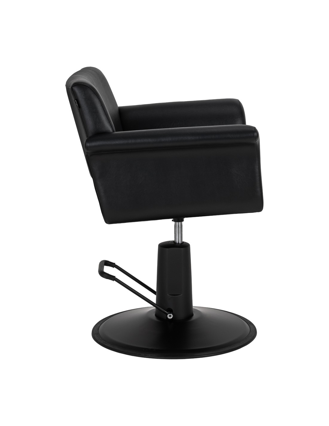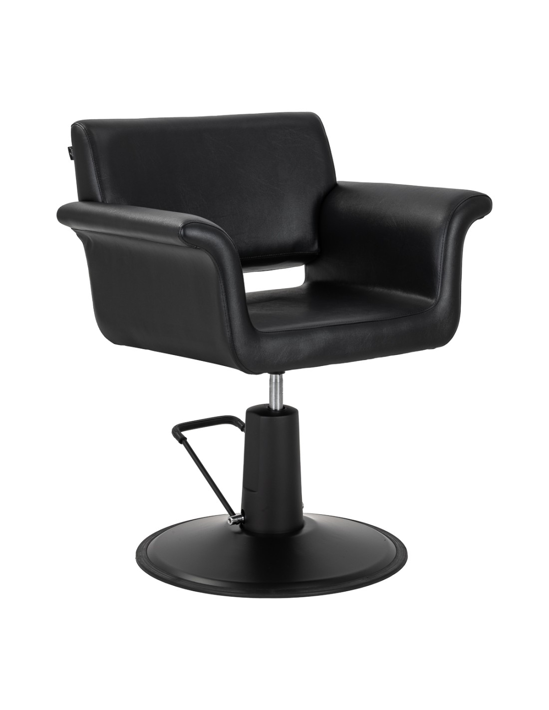 La poltrona per parrucchieri Gabbiano Lucca combina la semplicità moderna con il comfort dell'uso quotidiano. La base rotonda nera garantisce stabilità, mentre il rivestimento in pelle sintetica nei toni del nero assicura il comfort durante i trattamenti. I materiali durevoli e resistenti all'umidità rendono questo modello non solo confortevole ma anche eccezionalmente facile da curare, mantenendo il suo aspetto estetico per anni. I caratteristici braccioli curvati verso l'esterno conferiscono alla poltrona un aspetto elegante, favorendo al contempo una posizione comoda per il cliente. Questo modello versatile si adatta perfettamente sia agli interni moderni che a quelli più classici, sottolineando lo stile professionale del salone.