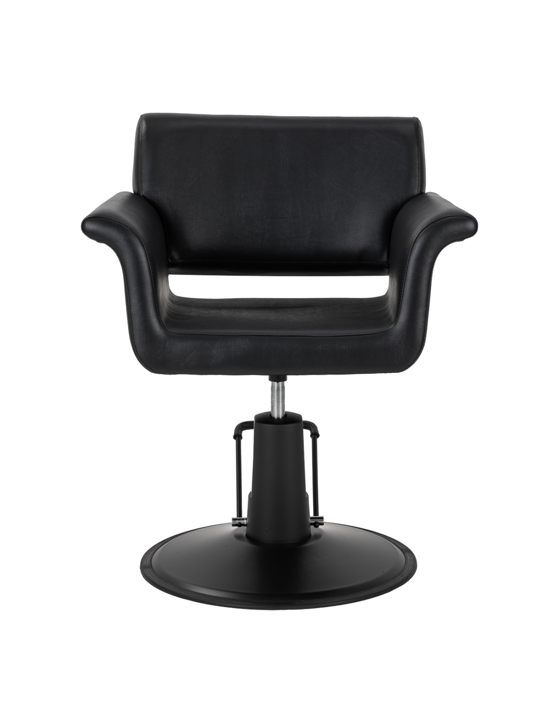 La seduta è stata progettata pensando al comfort, anche durante i trattamenti più lunghi. I braccioli curvi verso l'esterno, posizionati a un'altezza ergonomica, sostengono la corretta postura della cliente, facilitando la precisione del taglio e dello styling. Un'ulteriore comodità è rappresentata dall'apertura tra lo schienale e il sedile, che facilita la pulizia consentendo una rapida rimozione dei peli dalle zone più difficili da raggiungere. In questo modo la preparazione della postazione per il cliente successivo è più semplice, veloce e igienica.