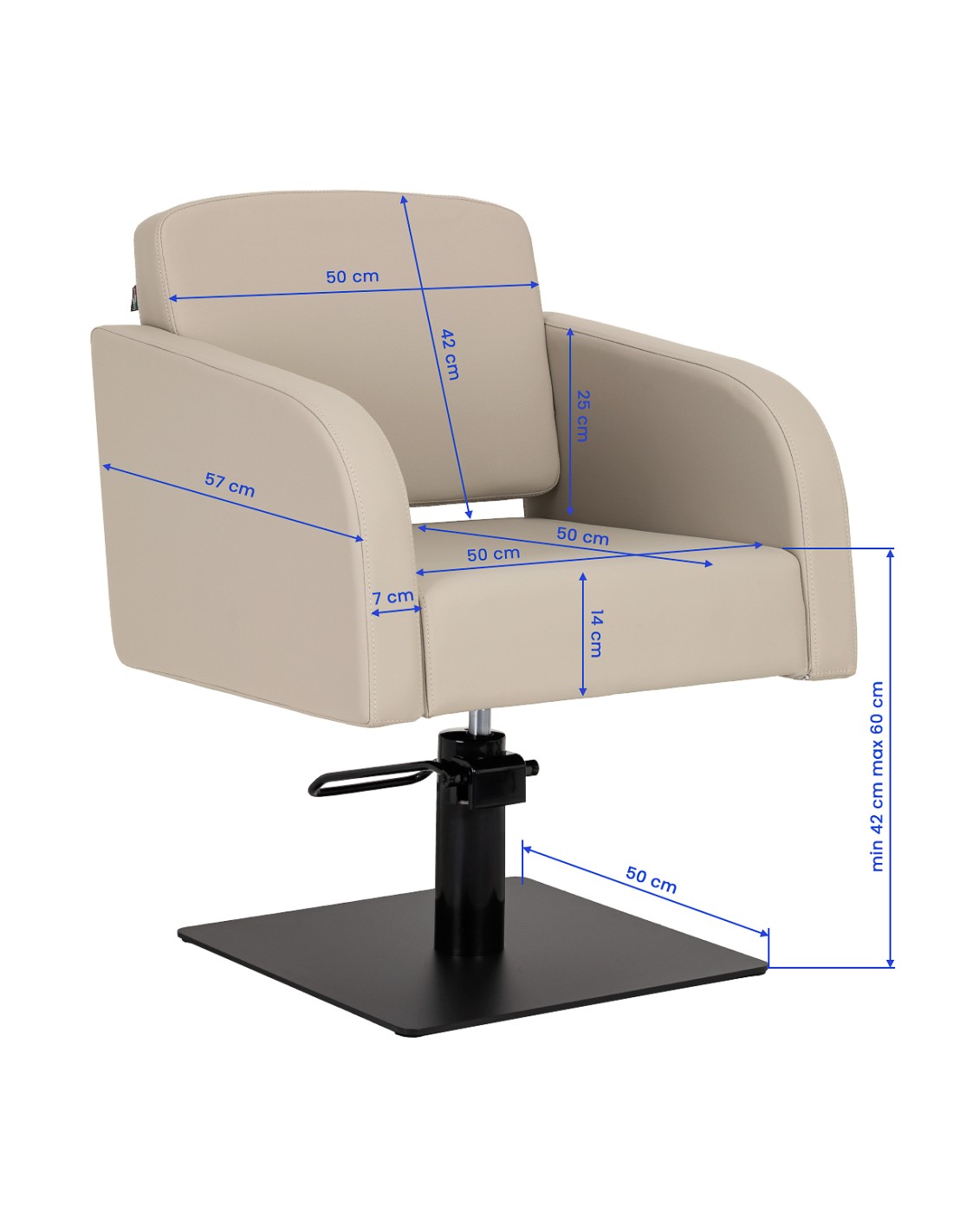 Il resistente sollevatore idraulico consente di regolare agevolmente l'altezza della seduta da 42 a 60 cm, anche quando il cliente è seduto sulla poltrona. Ciò rende il lavoro ergonomico e la posizione può essere facilmente regolata per adattarsi all'altezza del cliente e dell'acconciatore. Il comodo schienale facilita una posizione confortevole e fornisce un supporto stabile alla schiena, particolarmente importante durante i trattamenti più lunghi, aumentando al contempo il comfort e la soddisfazione della cliente.