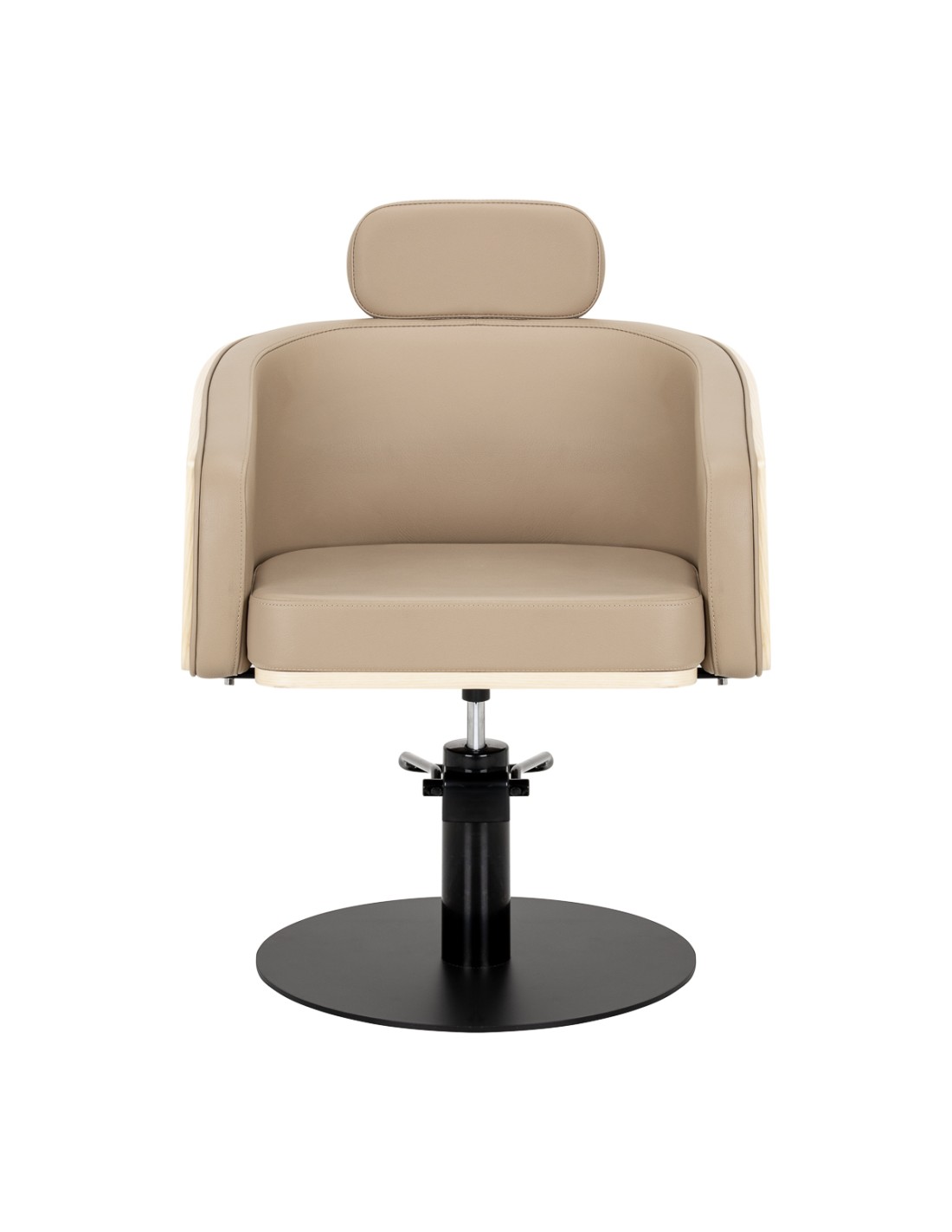 Il sedile imbottito di schiuma offre un elevato comfort anche durante i trattamenti più lunghi. Il meccanismo di rotazione completa aumenta la mobilità e la libertà di movimento, rendendo il lavoro del parrucchiere più fluido, efficiente e meno faticoso. I braccioli supportano la corretta postura del cliente, favorendo una posizione di seduta confortevole e consentendo uno styling e un taglio precisi.