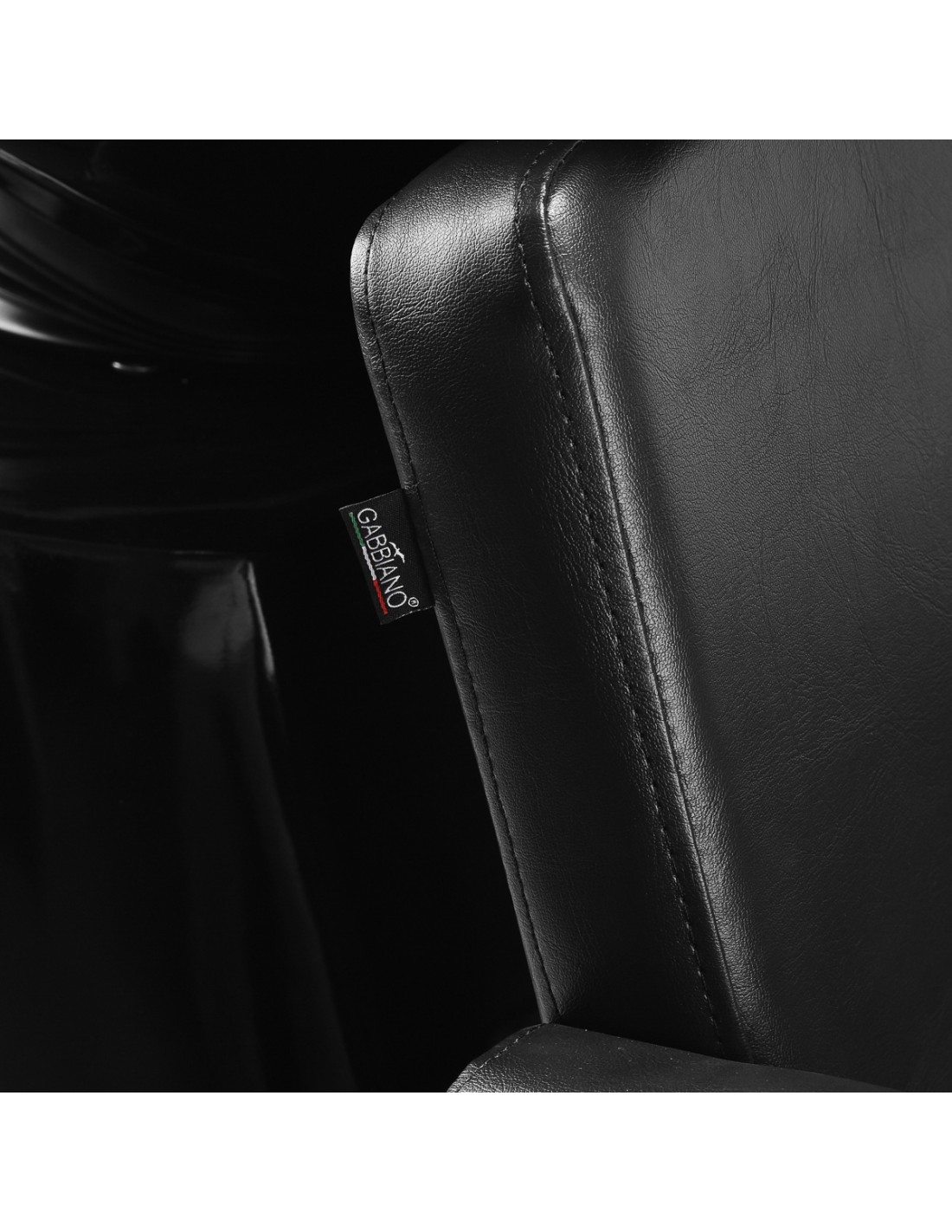 Questa poltrona minimalista con una seduta distintamente arrotondata combina una forma semplice con un elevato comfort. Lo schienale, con un angolo di inclinazione ottimale, favorisce una posizione naturale del corpo. Il rivestimento, realizzato in pelle sintetica di alta qualità nei toni del nero, è resistente e facile da pulire. Il design moderno dei mobili sottolinea il carattere elegante del lavabo e si integra perfettamente con l'arredamento del salone. Il set comprende una serie completa di accessori con finitura opaca nei toni del nero, tra cui rubinetto, soffione e tubi flessibili coordinati, che forniscono un set completo di strumenti di lavoro.