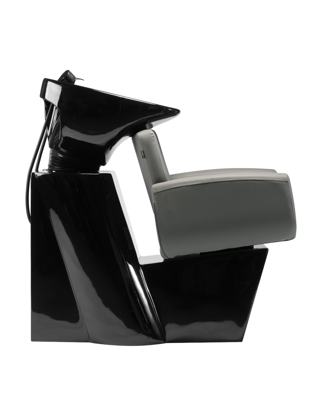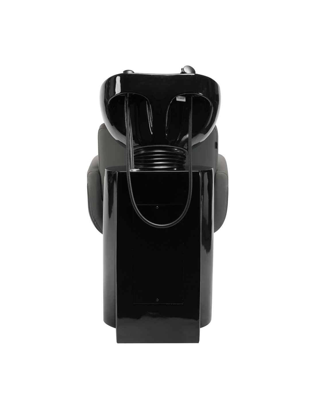La profonda vasca in ceramica nei toni del nero riduce gli schizzi di acqua e cosmetici utilizzati durante i trattamenti. L'angolo di inclinazione regolabile consente di adattarsi alle esigenze individuali. Il materiale durevole è resistente a macchie, graffi e sostanze chimiche e la superficie liscia ne facilita la pulizia. Il collare ergonomico offre un comodo supporto per la testa.