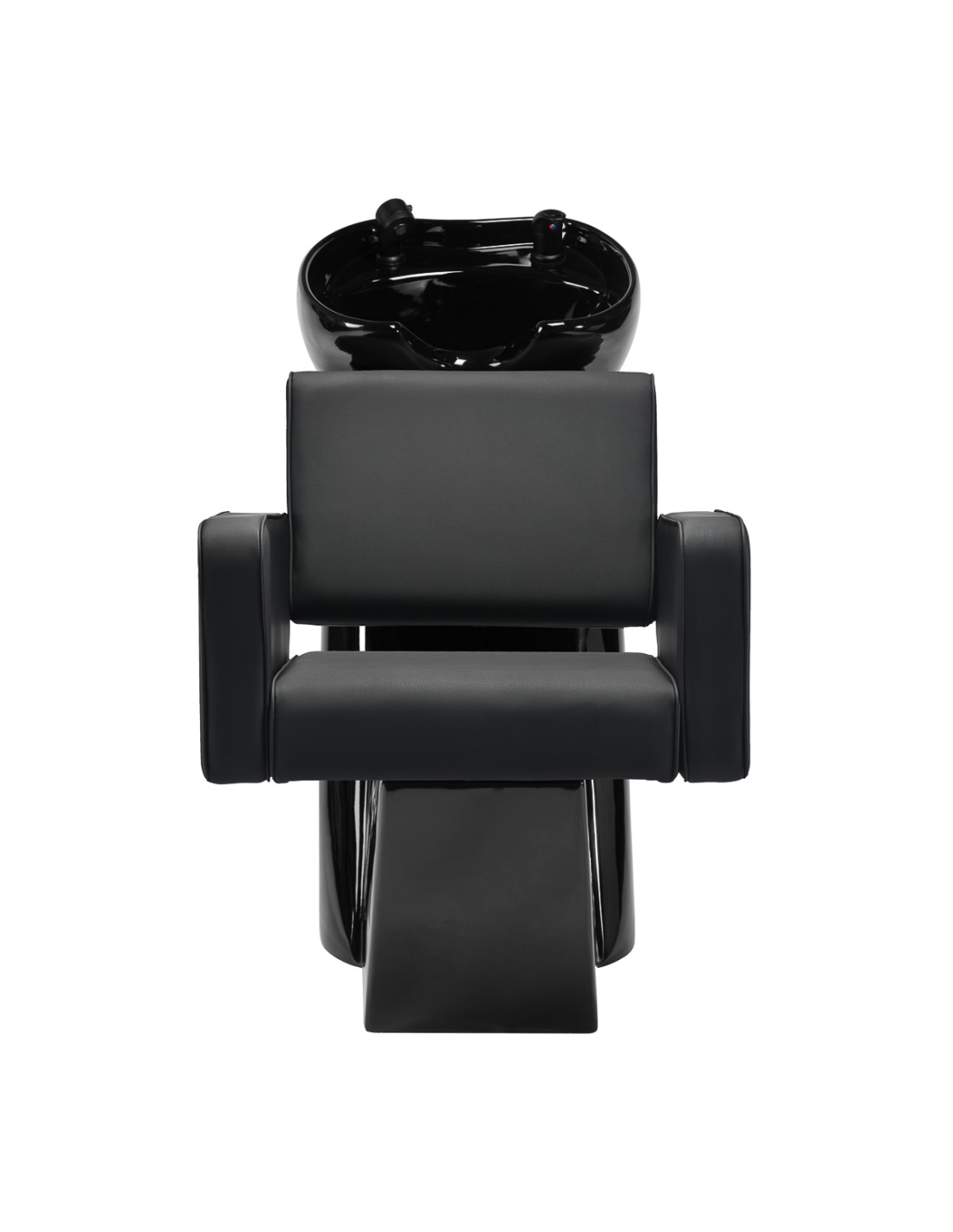 La profonda vasca in ceramica nei toni del nero riduce al minimo gli schizzi di acqua e cosmetici durante i trattamenti. L'angolo regolabile della bacinella permette di adattarsi con precisione alle esigenze del cliente. Realizzata in materiale durevole, è resistente allo scolorimento, ai graffi e agli agenti chimici, e la sua superficie liscia la rende facile da mantenere pulita. Il collare dal profilo ergonomico offre un comodo appoggio per la testa, mentre la copertura in plastica nera elimina la sensazione di freddo quando si tocca la ceramica.