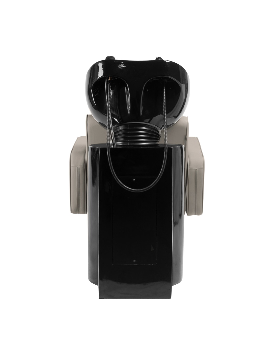 La profonda vasca in ceramica nei toni del nero riduce al minimo gli schizzi di acqua e cosmetici durante i trattamenti. L'angolazione regolabile della bacinella permette di adattarsi con precisione alle esigenze del cliente. Realizzata in materiale durevole, è resistente allo scolorimento, ai graffi e agli agenti chimici, e la sua superficie liscia la rende facile da mantenere pulita. Il collare dal profilo ergonomico offre un comodo appoggio per la testa, mentre la copertura in plastica nera elimina la sensazione di freddo quando si tocca la ceramica.