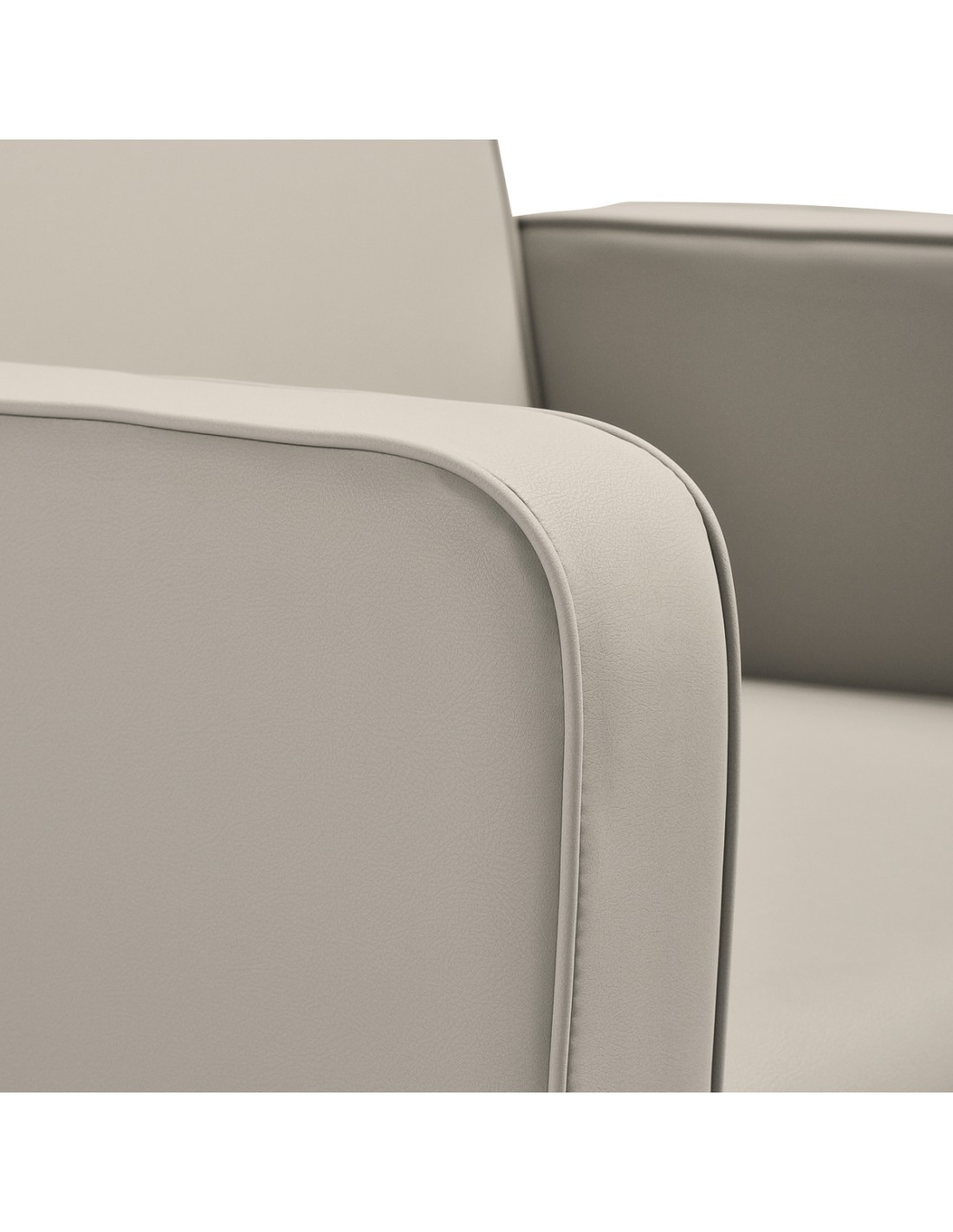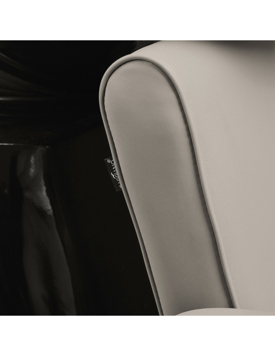 La forma geometrica della poltrona, con bordi dolcemente arrotondati , unisce semplicità e comfort in un design moderno. Il sedile quadrato e i braccioli dolcemente angolati creano un insieme armonioso, garantendo una posizione confortevole durante i trattamenti. Lo schienale, con il suo angolo di inclinazione ottimale, favorisce una postura corretta, consentendo un completo relax. Il rivestimento in pelle sintetica grigia e beige di alta qualità è resistente e facile da pulire. La forma geometrica e moderna dei mobili sottolinea il carattere elegante del lavatesta e si integra perfettamente con l'arredamento del salone. Il set comprende una serie completa di accessori con finitura nera opaca, tra cui rubinetto, soffione e tubi flessibili coordinati, per garantire un set completo di strumenti per il lavoro.