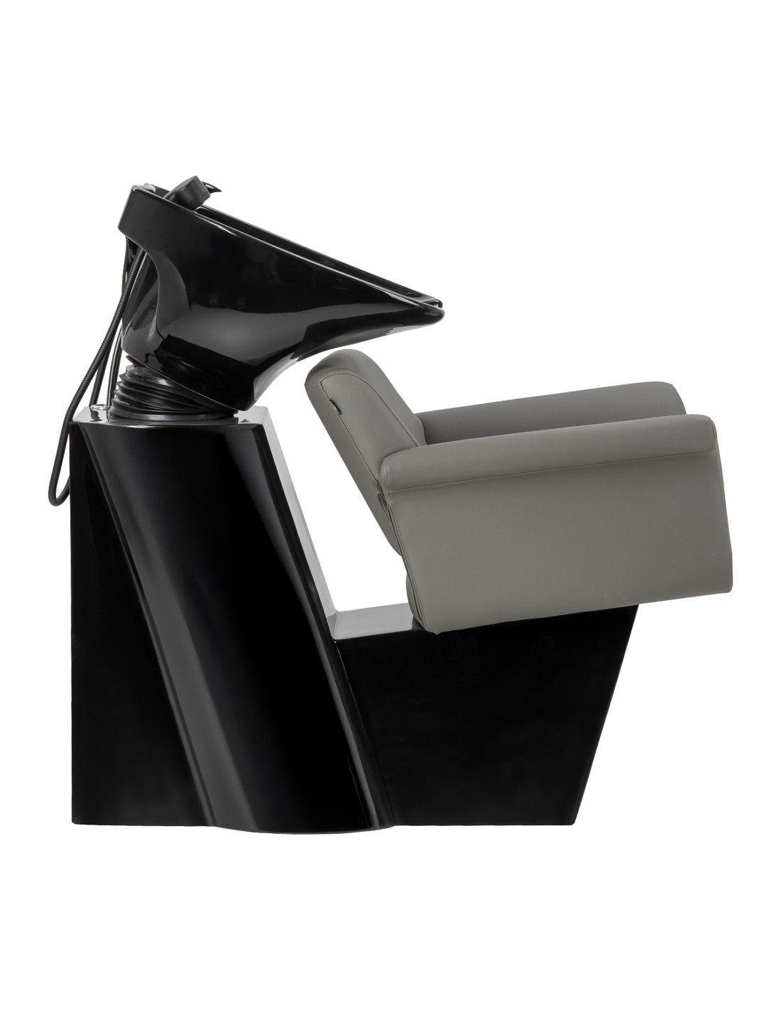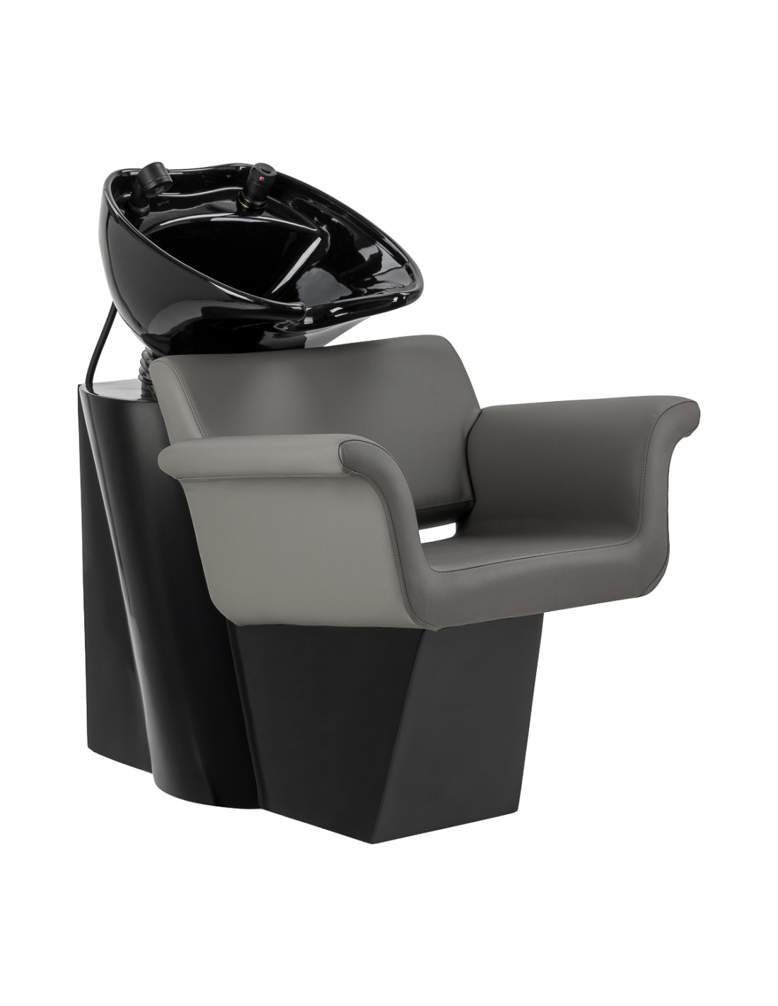 La poltrona unisce una forma moderna e minimalista a un elevato comfort d'uso. I braccioli, caratteristicamente ricurvi verso l'esterno, le conferiscono un carattere elegante, sostenendo al contempo una posizione comoda e naturale del cliente. Lo schienale, con un angolo di inclinazione ottimale, favorisce una postura corretta e il rilassamento durante i trattamenti. L'utilizzo di materiali durevoli e resistenti all'umidità si traduce in una facile manutenzione e permette di mantenere l'aspetto estetico del mobile per lungo tempo. La rubinetteria completa – miscelatore, doccetta e tubi dedicati – garantisce la piena operatività della postazione. Il design universale fa sì che il modello si adatti perfettamente sia agli allestimenti moderni che a quelli classici, sottolineando il carattere professionale del salone.