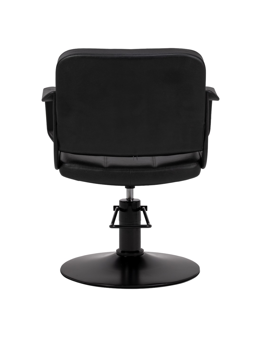 La forma elegante unisce lo stile moderno alla durata e alla struttura stabile, creando un arredo estetico e funzionale per il salone di parrucchiere. Il rivestimento in pelle sintetica nera si distingue per la resistenza all'umidità e la facilità di pulizia, il che si traduce in un utilizzo confortevole e duraturo. La base rotonda garantisce stabilità e resistenza durante il lavoro quotidiano, mentre i dettagli accuratamente realizzati sottolineano la qualità del modello. La combinazione di colori universale e minimalista, unita alle cuciture decorative, fa sì che la poltrona si integri perfettamente in una varietà di allestimenti di saloni, aggiungendo un tocco di eleganza all'ambiente.