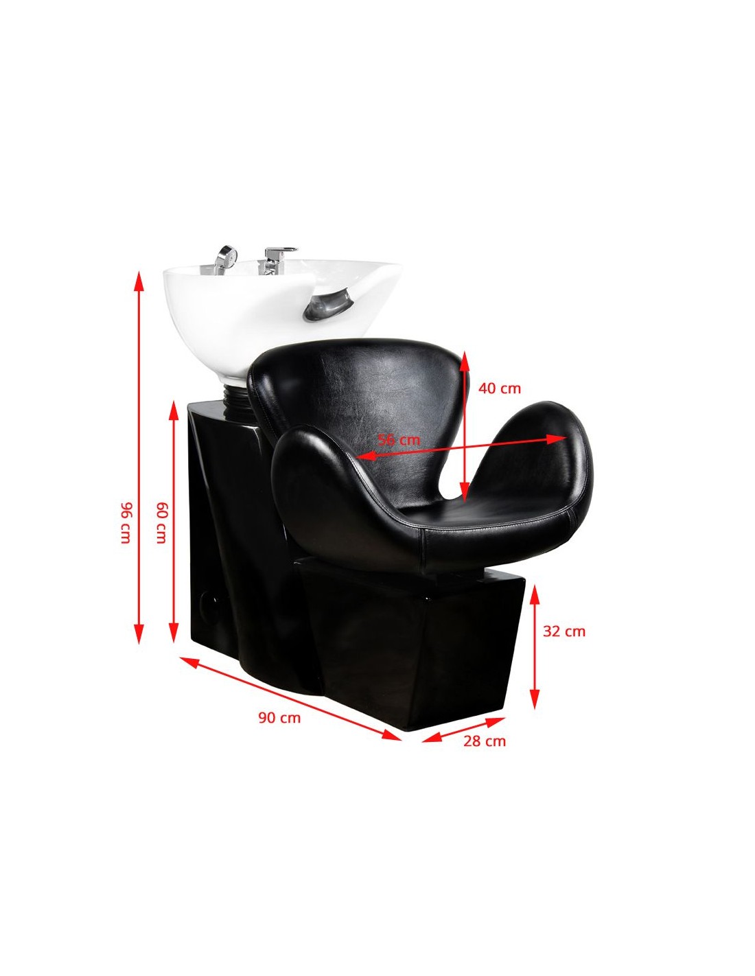Lavabo professionale per parrucchieri - stabile, estremamente confortevole, di solida fattura. Il suo design moderno lo rende un bellissimo complemento all'attrezzatura di un moderno salone da parrucchiere. La seduta affusolata è realizzata in ecopelle di alta qualità e di facile manutenzione. Il cuscinetto in silicone stabilizza la testa del cliente e gli permette di sedersi comodamente sul lavatesta. La vasca del lavatesta è bianca, con la possibilità di regolarne l'inclinazione. Lavatrice in nero.