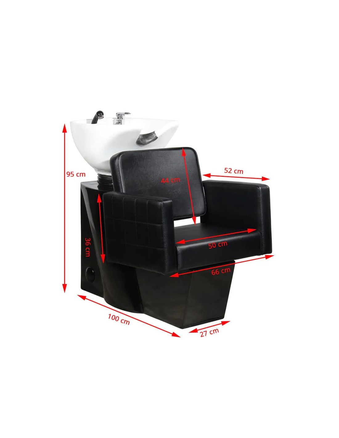Lavabo professionale per parrucchieri - stabile, estremamente confortevole, di solida fattura. Il suo design moderno lo rende un bellissimo complemento all'attrezzatura di un moderno salone da parrucchiere. La seduta è realizzata in ecopelle di alta qualità con interessanti cuciture laterali. Il cuscinetto in silicone stabilizza la testa del cliente e permette di posizionarla comodamente sul lavatesta. La vasca del lavatesta è bianca, con la possibilità di regolarne l'inclinazione. Lavatrice in nero.    Dimensioni della confezione: 122,5 x 72,5 x 102,5 cm
