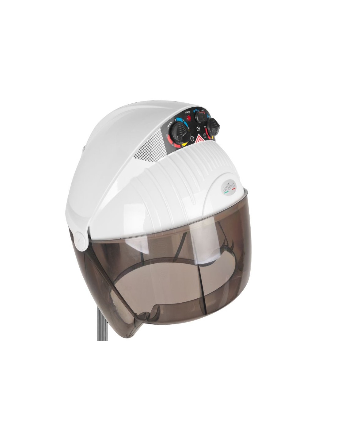 L'asciugacapelli presenta un design futuristico che aggiunge un tocco moderno a qualsiasi ambiente. Grazie al suo design, alle funzioni avanzate e alla facilità d'uso , è la scelta perfetta per i parrucchieri professionisti che desiderano offrire un servizio di altissima qualità ai propri clienti. Il coperchio trasparente e sollevabile consente un comodo accesso e l'inclinazione regolabile del casco assicura una vestibilità precisa per i diversi clienti.