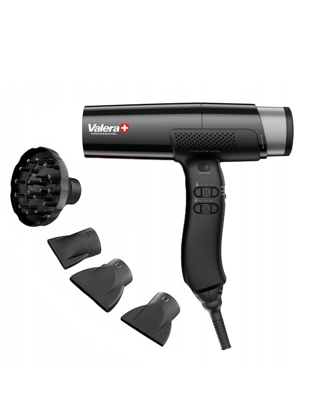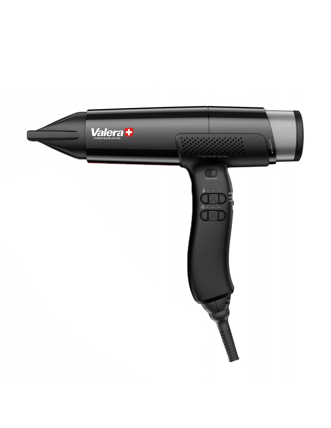 Valera MatrixCare AI è un asciugacapelli creato per stilisti professionisti e utenti domestici esigenti. Combina una tecnologia moderna con un'eccezionale leggerezza e comfort di lavoro. Grazie al motore digitale brushless 100K-PAX con una velocità di 100.000 giri al minuto, il dispositivo garantisce un'asciugatura rapida ed efficace, anche in caso di uso intensivo.