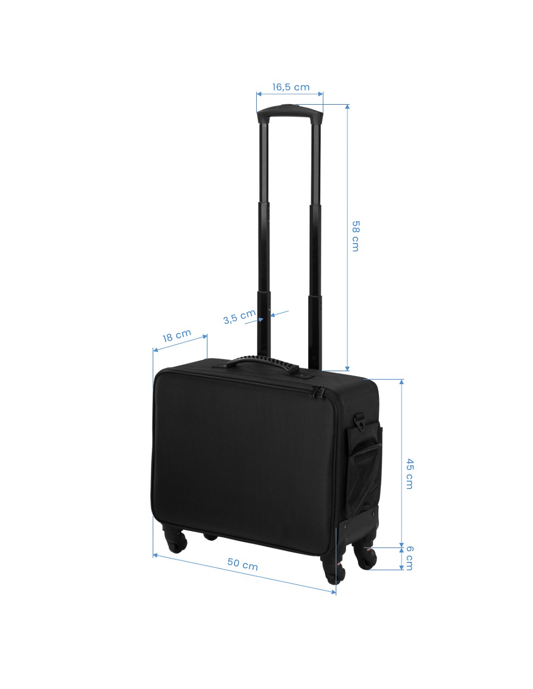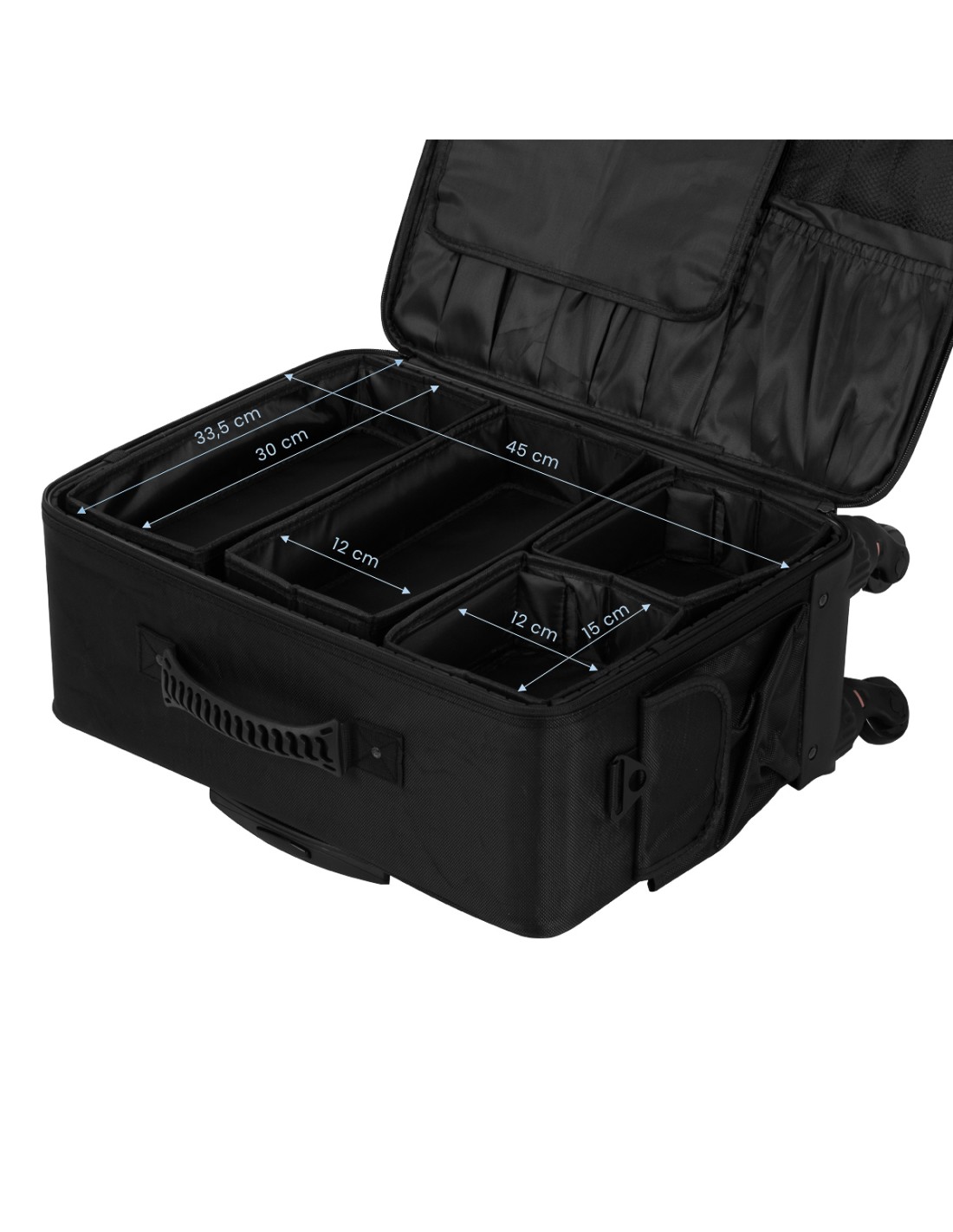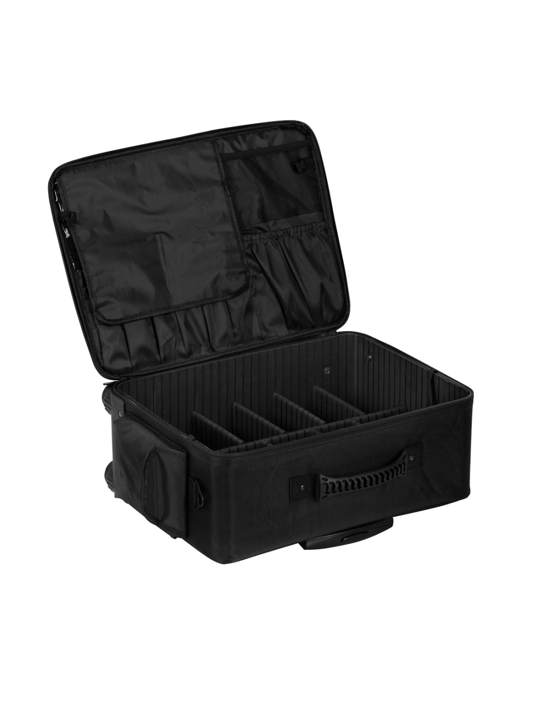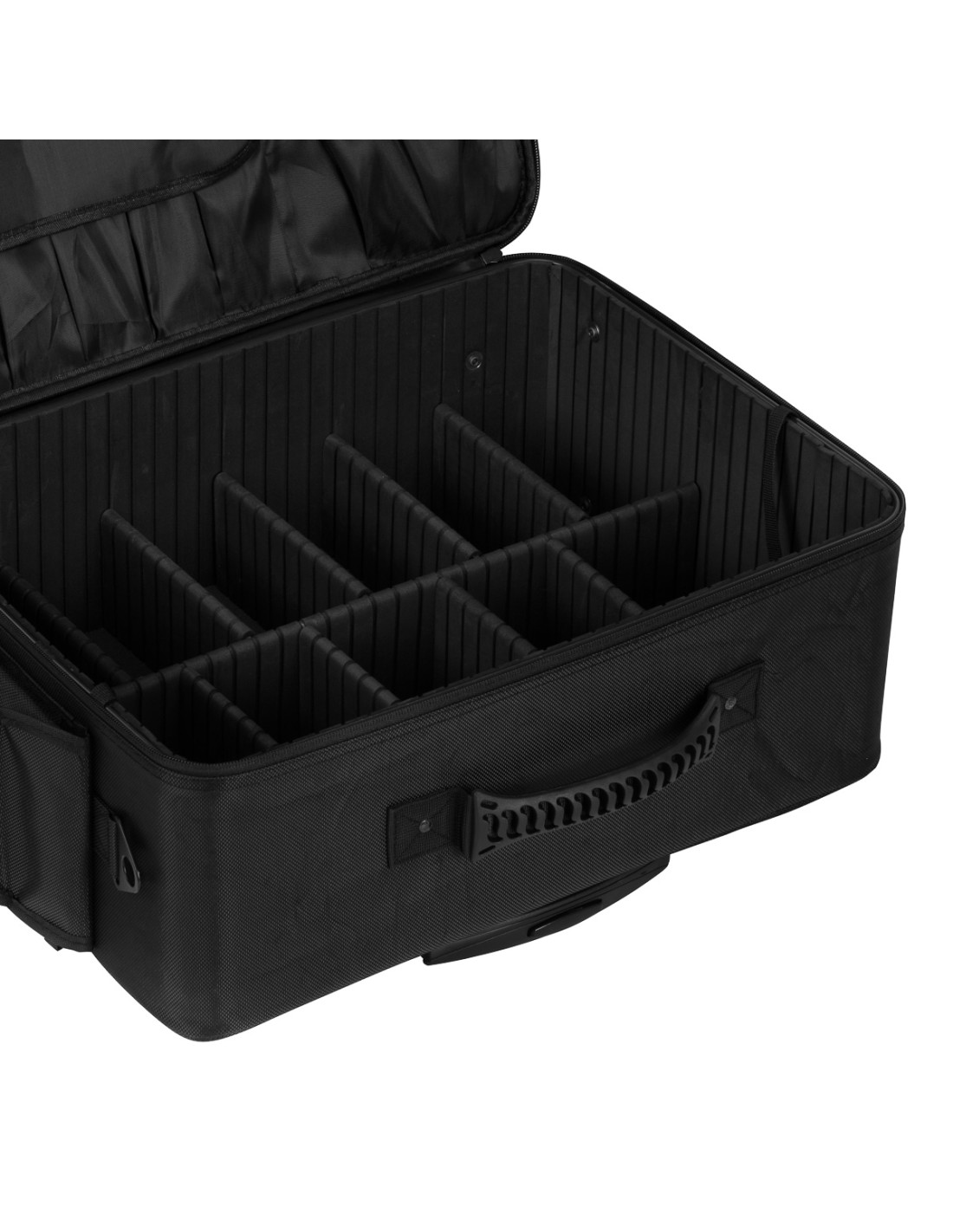 La valigia per parrucchieri su ruote è la soluzione ideale per i professionisti che apprezzano la praticità e l'ordine. Dotata di un manico telescopico e di ruote facili da rimuovere, garantisce un trasporto confortevole. L'interno spazioso e il set di quattro organizer consentono di separare e riporre facilmente gli accessori cosmetici essenziali. Design moderno, mobilità e praticità fanno di questa valigetta uno strumento indispensabile per ogni professionista della bellezza.