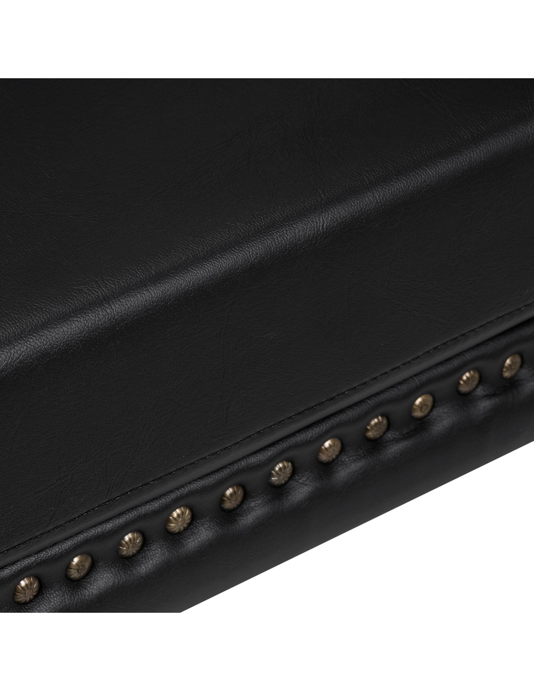 Il mobile funzionale è imbottito di schiuma durevole e resistente alla deformazione, mentre il rivestimento è in pelle sintetica piacevole al tatto nei toni del nero. I materiali utilizzati garantiscono un uso confortevole del mobile per lungo tempo e lo rendono resistente all'umidità, durevole e facile da pulire. La trapuntatura decorativa e gli elementi color oro gli conferiscono un'espressione di eleganza senza tempo. La poltrona per parrucchieri Gabbiano Berlin si distingue per il suo design esclusivo, che le conferisce un carattere unico e la renderà perfetta in molti saloni di parrucchieri.