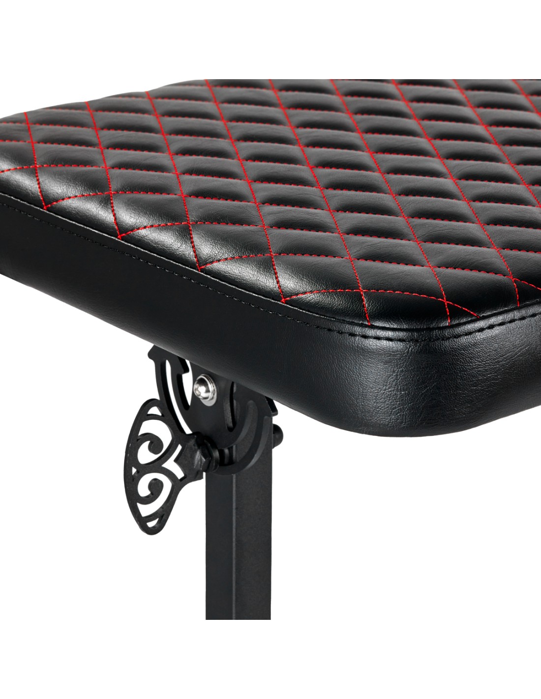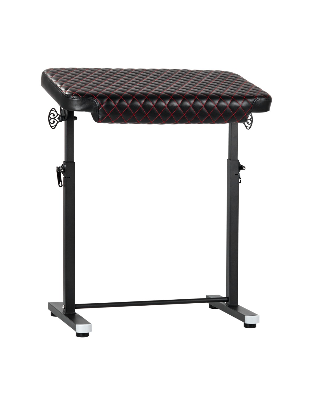 La solida struttura in metallo nei toni del nero garantisce la stabilità e la durata del bracciolo, aspetto estremamente importante durante il lavoro del tatuatore. Il rivestimento in pelle sintetica nei toni del nero con elegante trapuntatura nera assicura una facile pulizia dell'attrezzatura. Il design moderno valorizzerà l'arredamento di uno studio di tatuaggi, sottolineando il carattere unico del luogo. Una combinazione di comfort, funzionalità e stile che sicuramente piacerà sia ai professionisti che ai clienti dello studio. Il bracciolo facilita notevolmente il lavoro, ma contribuisce anche a creare un'atmosfera piacevole nel salone, enfatizzandone l'ambiente.
