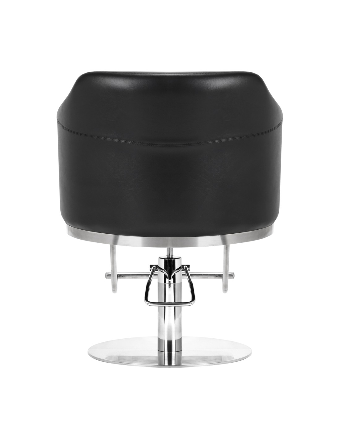 Il resistente sollevatore idraulico consente di regolare il livello della seduta entro un intervallo di 54-71 cm, anche quando il cliente è seduto sulla poltrona. Questo garantisce un lavoro più ergonomico, grazie alla possibilità di regolare l'altezza in base alla statura del cliente e del parrucchiere. Lo schienale, opportunamente sagomato e arrotondato, consente una posizione comoda, importante soprattutto per i trattamenti di molte ore. Un vantaggio significativo è il poggiapiedi, abbinato a questo modello, che fornisce un supporto stabile per i piedi dell'utente.