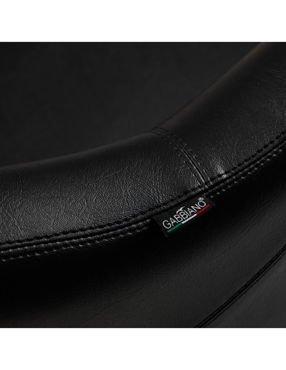 La poltrona è imbottita di schiuma, che è resistente e non si deforma, garantendo un uso confortevole per lungo tempo. Il rivestimento è in similpelle piacevole al tatto con una struttura specifica. Grazie all'uso di questo materiale, l'apparecchiatura è resistente all'umidità, durevole e facile da pulire. Il rivestimento nei toni del nero e le superfici metalliche decorative laccate in oro gli conferiscono un'espressione di eleganza senza tempo. Grazie alla sua caratteristica finitura classica, si inserisce perfettamente in qualsiasi spazio.