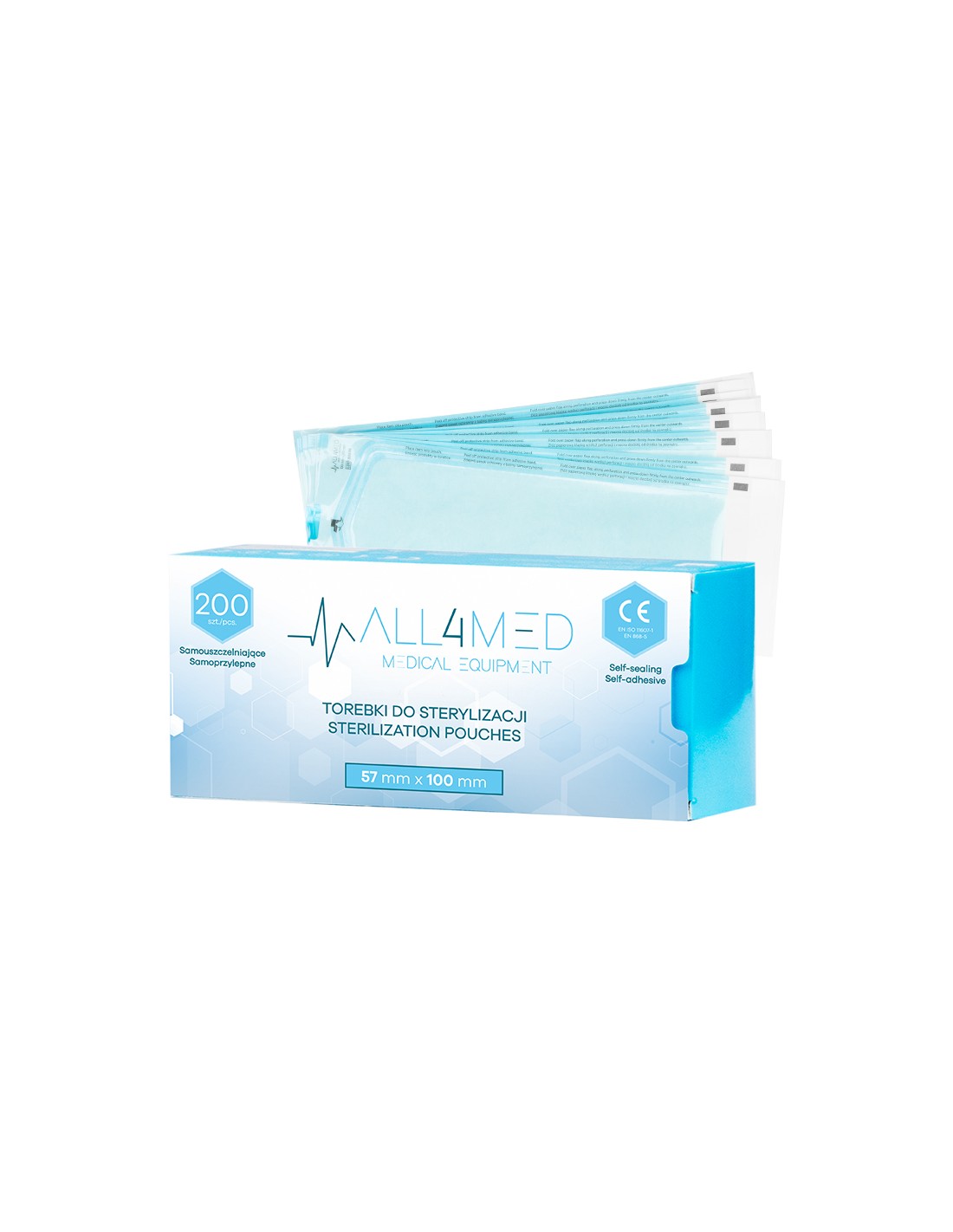Le buste autoadesive ALL4MED di alta qualità sono realizzate con materiali che soddisfano tutti gli standard medici richiesti. Sono dotate di un nastro autoadesivo grazie al quale non è necessario utilizzare un saldatore. L'indicatore posto sul prodotto confermerà il corretto svolgimento della sterilizzazione cambiando colore. Le buste sono progettate per la sterilizzazione a vapore.