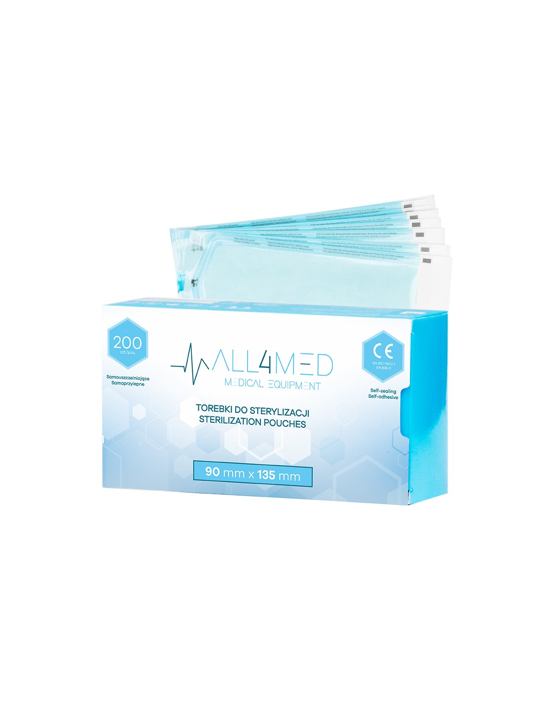 Le buste autoadesive ALL4MED di alta qualità sono realizzate con materiali che soddisfano tutti gli standard medici richiesti. Sono dotate di un nastro autoadesivo grazie al quale non è necessario utilizzare un saldatore. L'indicatore posto sul prodotto confermerà il corretto svolgimento della sterilizzazione cambiando colore. Le buste sono progettate per la sterilizzazione a vapore.
