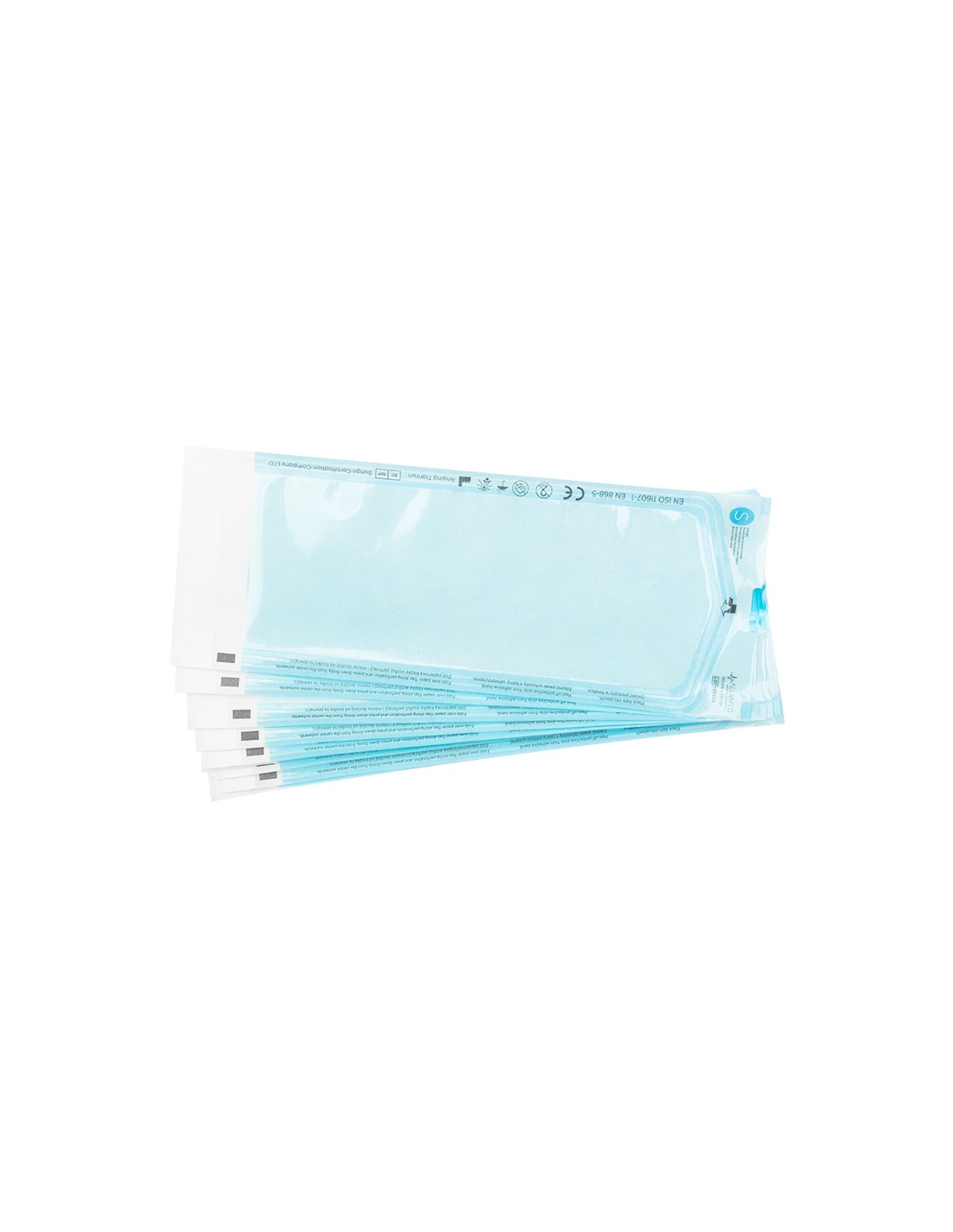 Norme e certificati: - EN ISO 11607-1 - EN ISO 11140-1 - EN ISO 13485 - EN 868 - 5 - CE Film: - Spessore 83µm (non abrasivo) - Colore blu (trasparente) Guarnizione: - Triplo sigillo con larghezza di 12 mm per un'altissima resistenza. Carta: - Di tipo medico con elevata resistenza meccanica. - Peso 60g/m2 . La confezione contiene 200 buste.