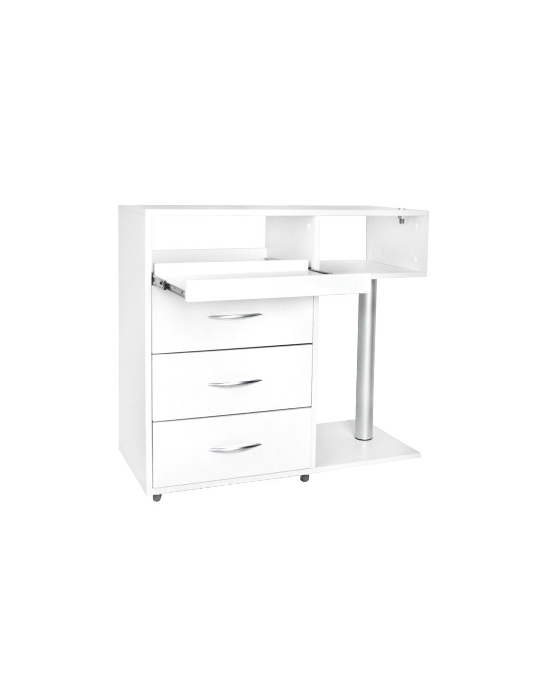 Unità podologica professionale, solidamente costruita con cassetti, tra cui un cassetto speciale per lo sterilizzatore UV-C e un ripiano per la fresatrice. Il supporto per la lente TUBE e le rotelle in metallo-gomma garantiscono la mobilità. Il supporto è progettato per facilitare il lavoro del professionista.