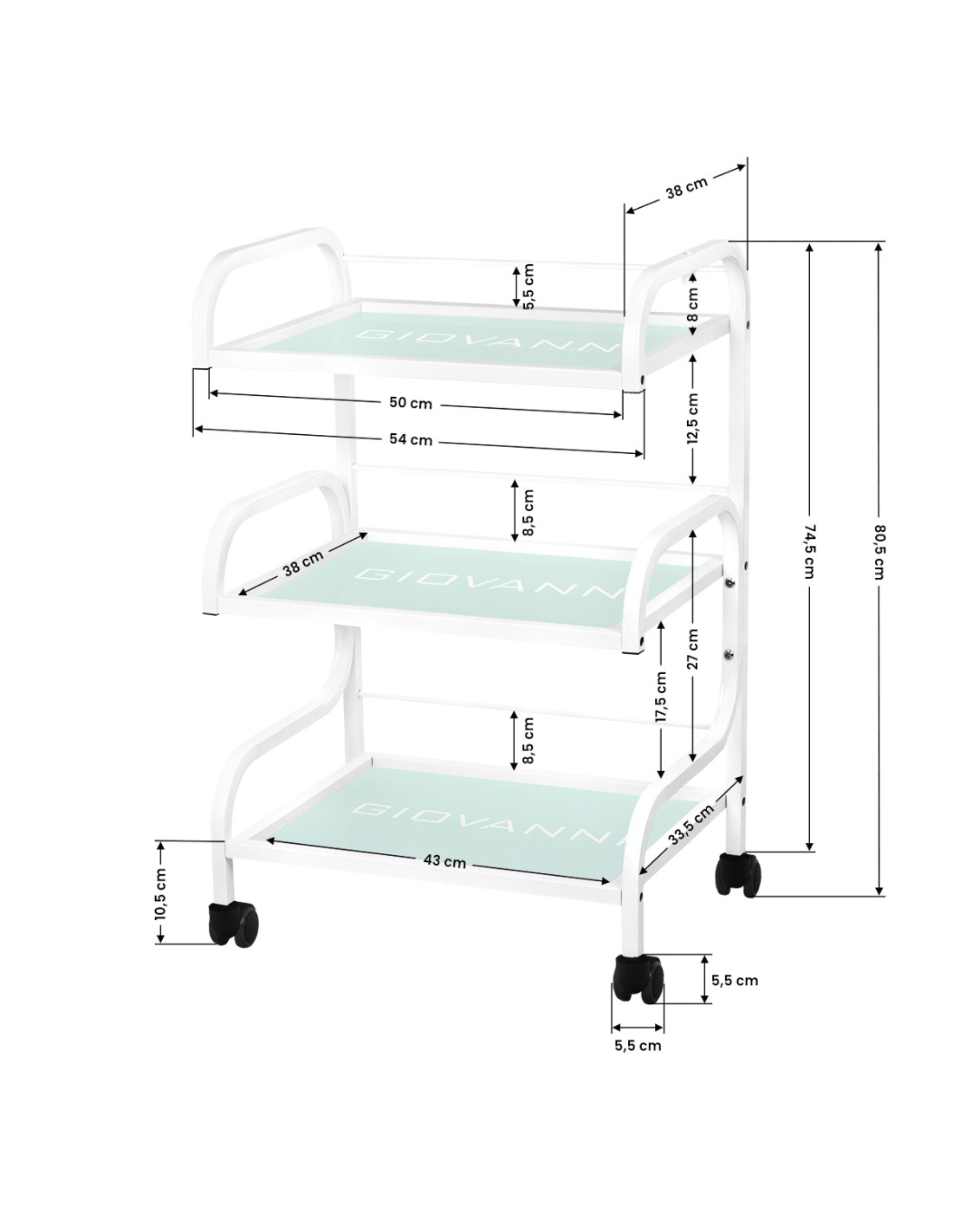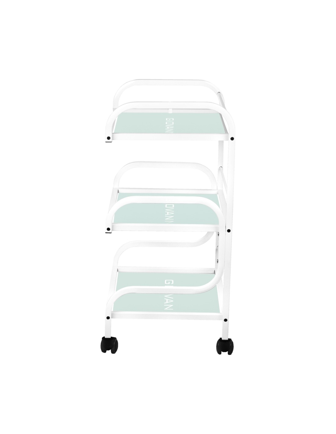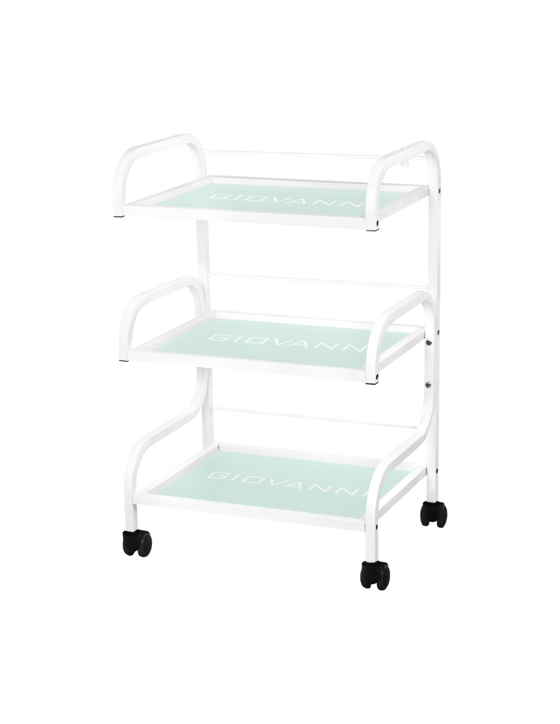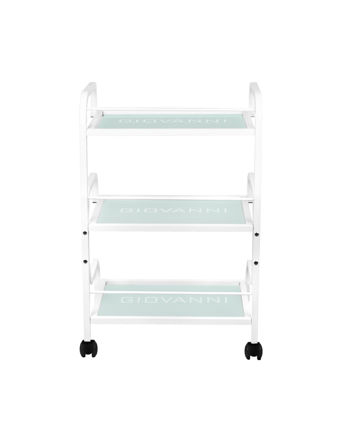 con rotelle. Ha tre ripiani in vetro con logo GIOVANNI inciso.