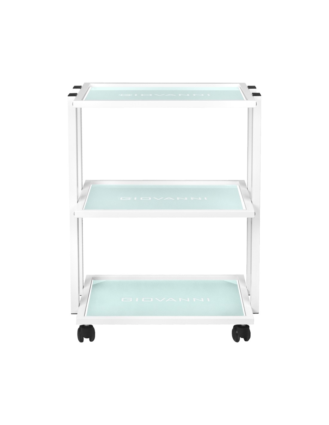 Il mobile è dotato di tre ripiani in vetro con il logo GIOVANNI inciso.