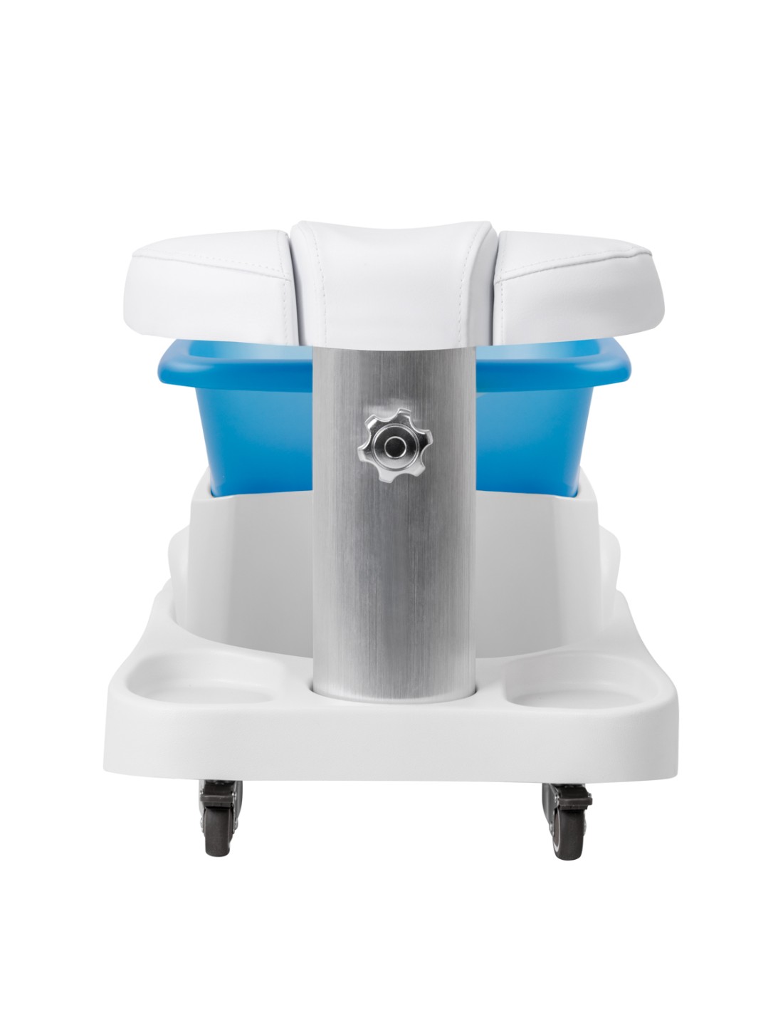 Il set pedicure professionale Azzurro comprende una vasca con funzione massaggio e un carrello regolabile, creando una postazione di lavoro completa per centri estetici e studi podologici. La struttura ben progettata favorisce il comfort del cliente e garantisce mobilità e comodità operativa per lo specialista.