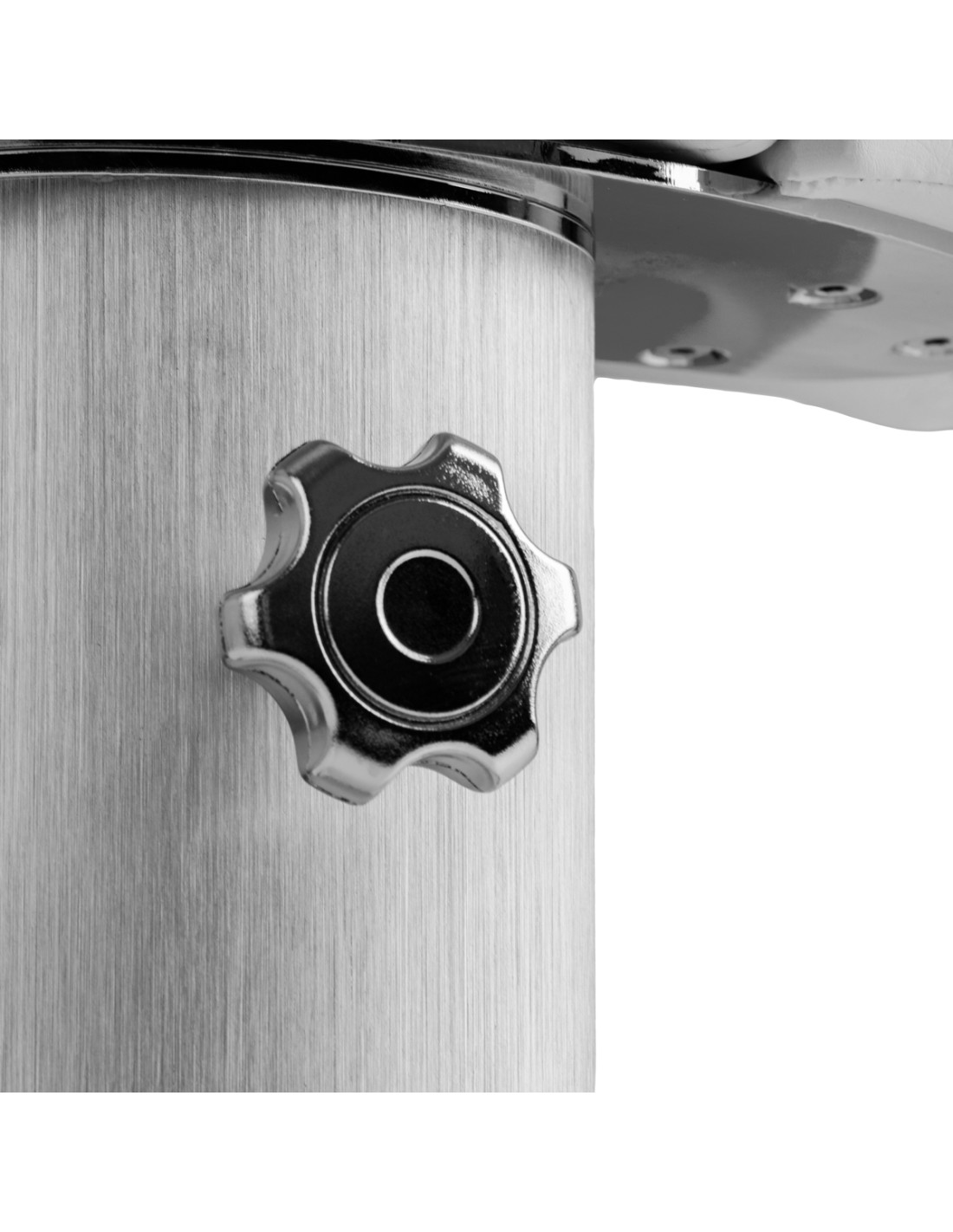 Il carrello regolabile con poggiapiedi consente di adattare la posizione alle esigenze del cliente e dell’operatore. Regolazione manuale dell’altezza fino a 20 cm, rivestimento in pelle sintetica resistente all’umidità e ruote in gomma stabili con sistema di blocco garantiscono comfort, mobilità e un’ottima organizzazione della postazione di lavoro.