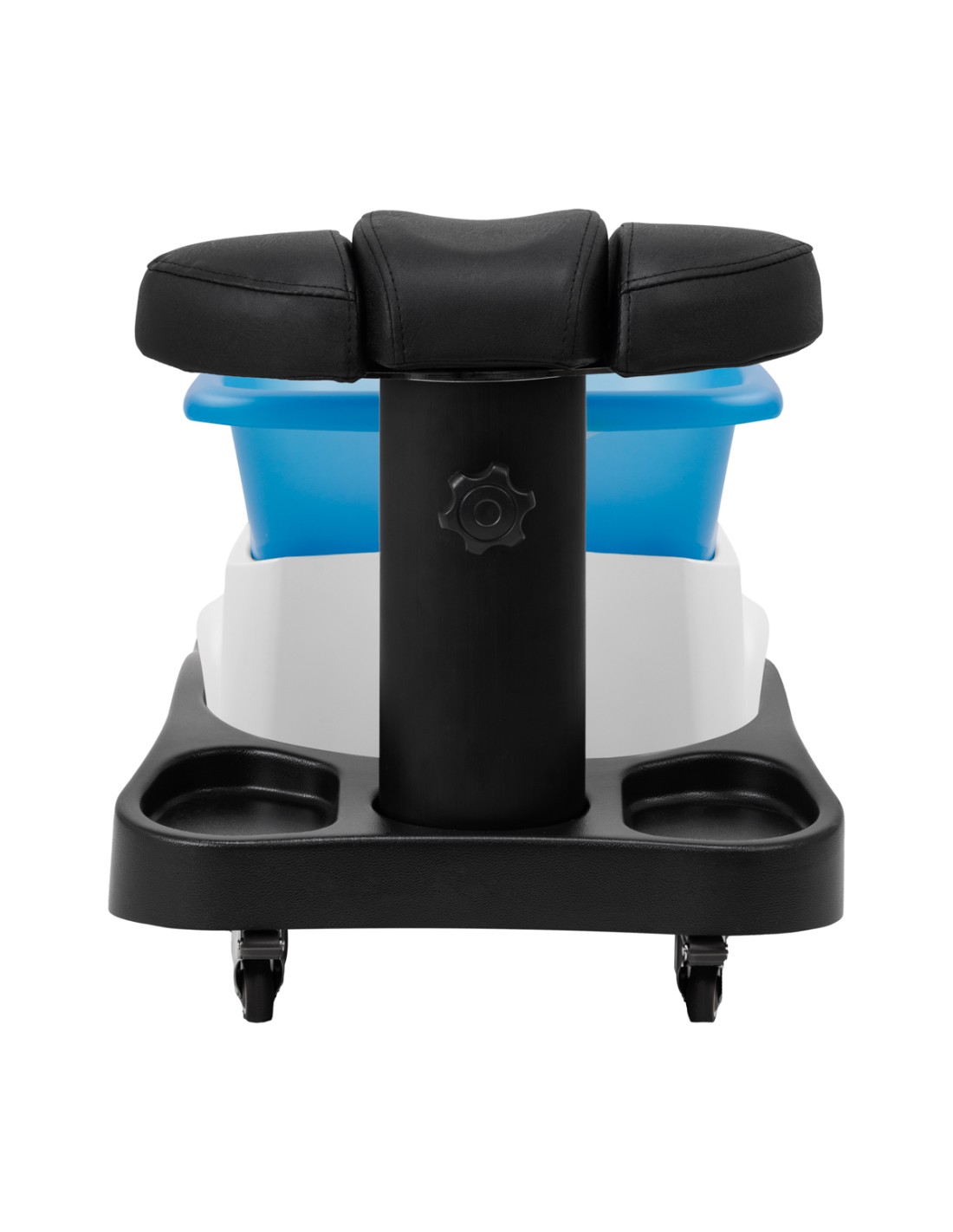Il set pedicure professionale Azzurro comprende una vasca con funzione massaggio e un carrello regolabile, creando una postazione di lavoro completa per centri estetici e studi podologici. La struttura ben progettata favorisce il comfort del cliente e garantisce mobilità e comodità operativa per lo specialista.