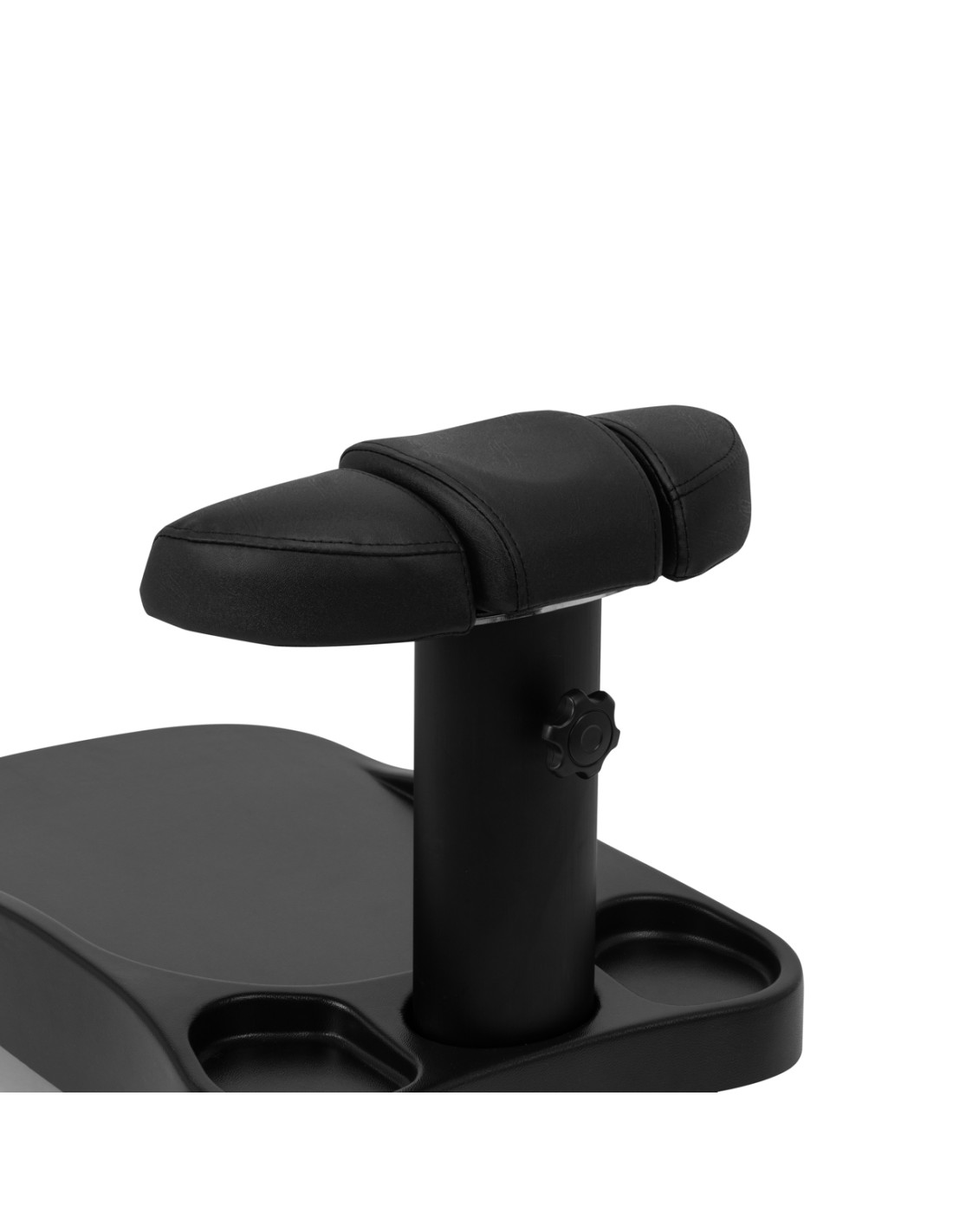 Il carrello regolabile con poggiapiedi consente di adattare la posizione alle esigenze del cliente e dell’operatore. Regolazione manuale dell’altezza fino a 20 cm, rivestimento in pelle sintetica resistente all’umidità e ruote in gomma stabili con sistema di blocco garantiscono comfort, mobilità e un’ottima organizzazione della postazione di lavoro.