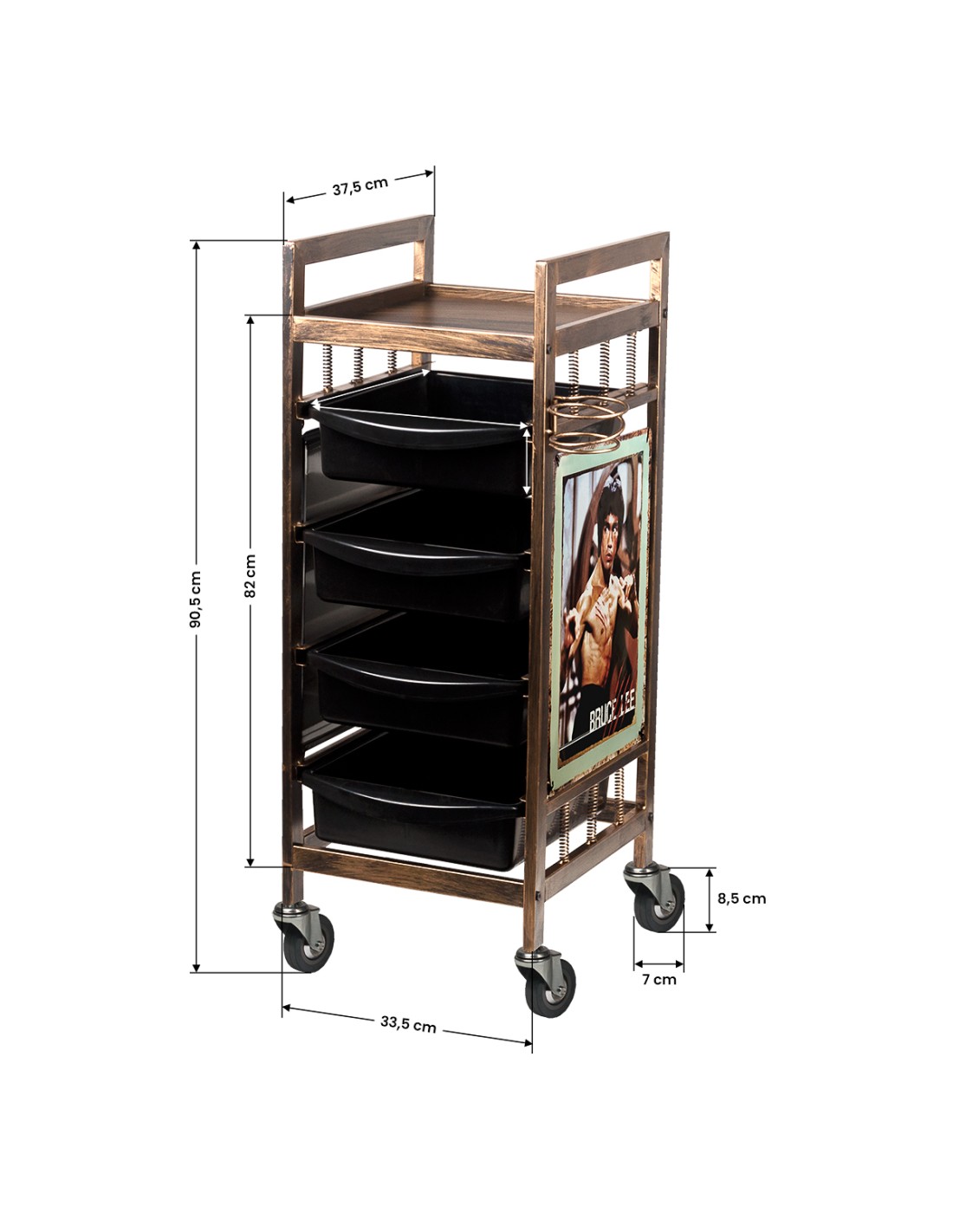 Questo aiutante barbiere bifacciale in oro antico è dotato di 4 vassoi e supporti per gli accessori da barbiere. La struttura stabile garantisce un utilizzo duraturo. Il tavolo è montato su rotelle gommate, grazie alle quali gli strumenti saranno sempre a portata di mano.