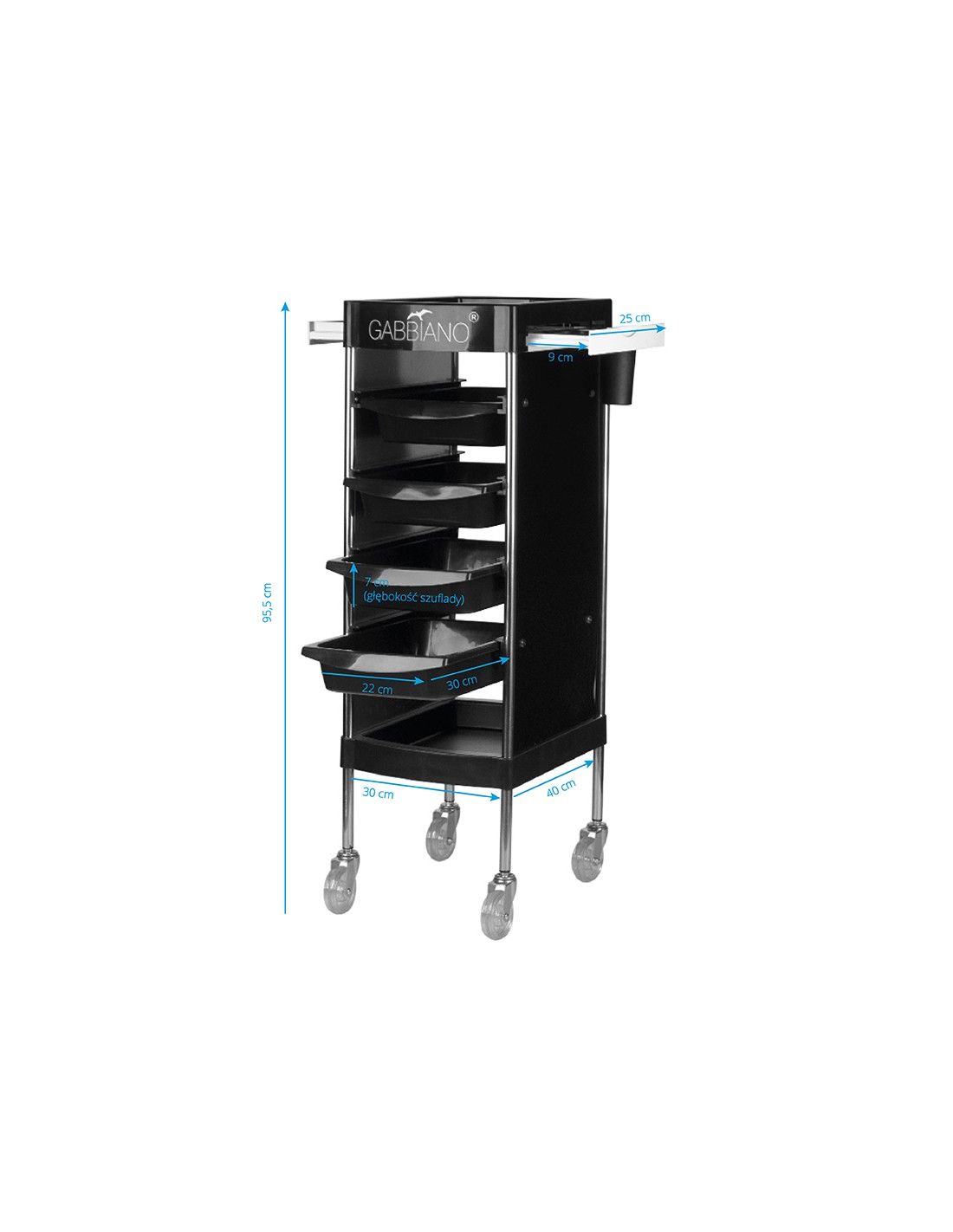 L'aiutante parrucchiere Gabbiano è un mobile di alta qualità. È realizzato in resistente plastica ABS con una struttura in acciaio, che garantisce un'elevata stabilità e durata. Il tutto poggia su ruote in gomma con cuscinetti molto robusti. Il classico colore nero si abbina perfettamente all'arredamento del vostro salotto!