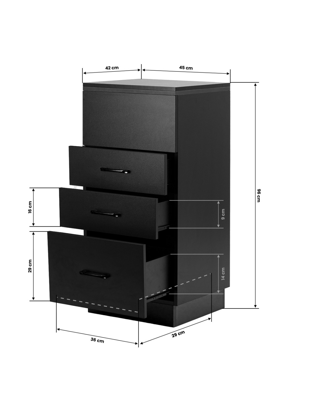 Il modello è dotato di tre capienti cassetti che consentono di tenere in ordine le cose e di sistemare in modo appropriato gli accessori necessari. Le giuste dimensioni consentono di riporre comodamente sia i piccoli strumenti che i prodotti per parrucchieri più grandi, in modo che tutti gli utensili necessari siano sempre in un unico posto.