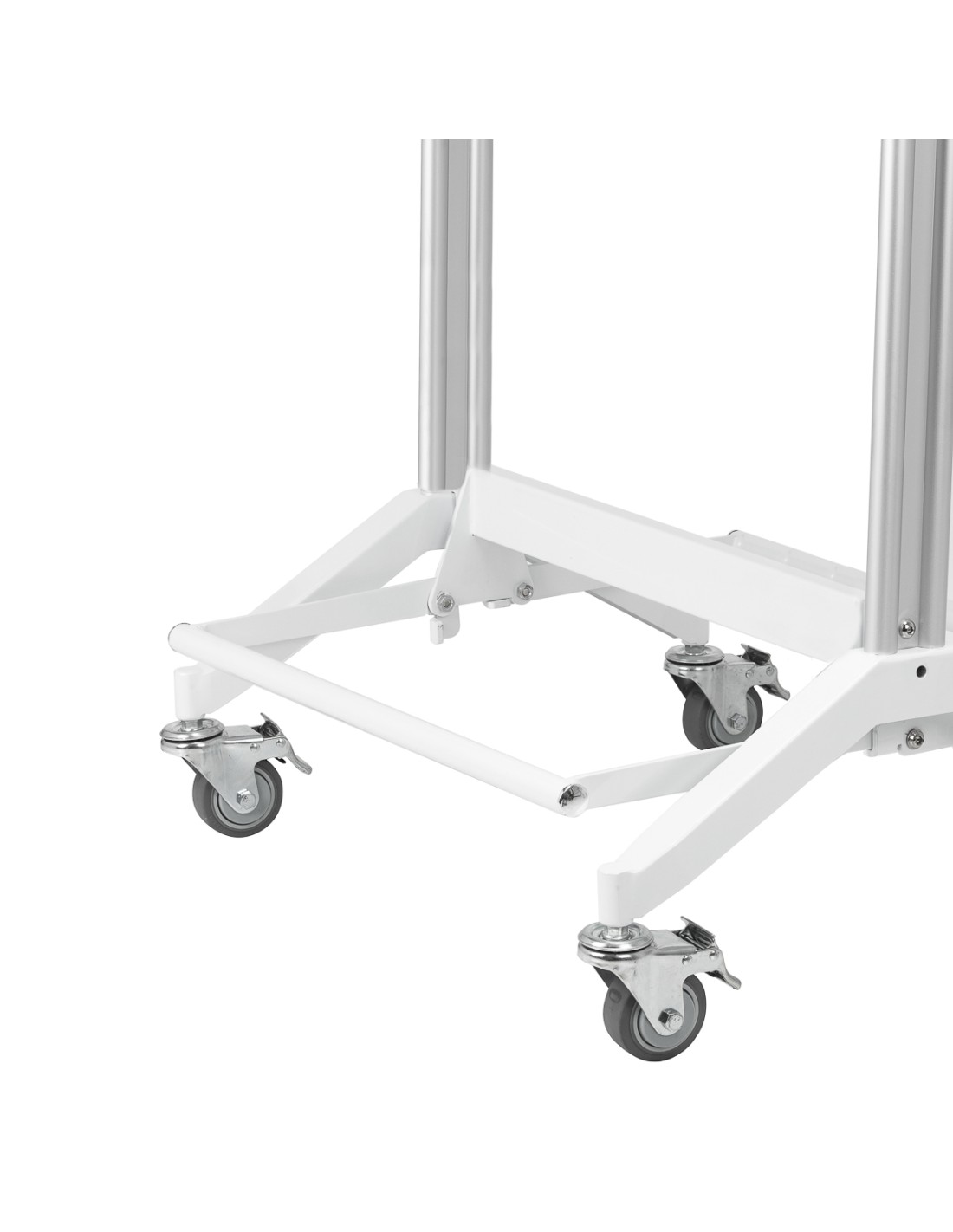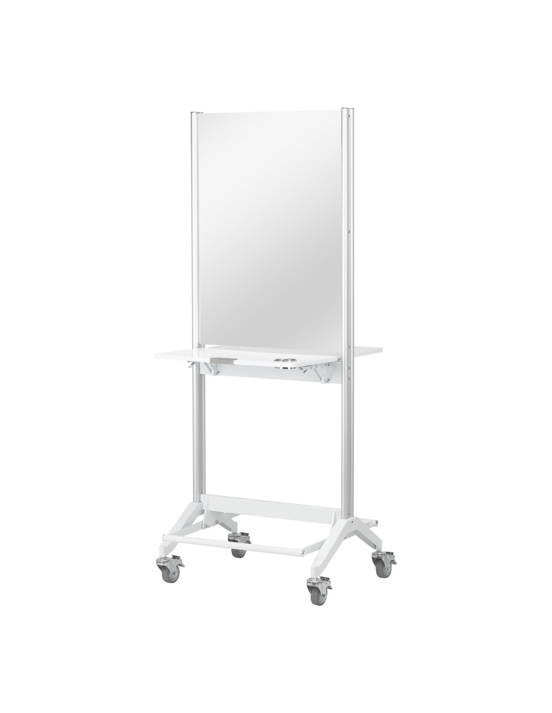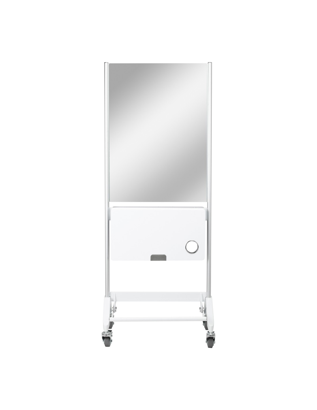 Il pratico ripiano pieghevole ad un'altezza di 90 cm è uno dei principali vantaggi della consolle MI-03, che consente di risparmiare spazio offrendo al contempo uno spazio di archiviazione funzionale. Inoltre, il design bifacciale e le rotelle bloccabili garantiscono la mobilità e la facilità di riposizionamento della console. I fori sul ripiano fungono da supporto per l'asciugacapelli, rendendo la console ancora più pratica e adatta alle esigenze dei professionisti dell'acconciatura.