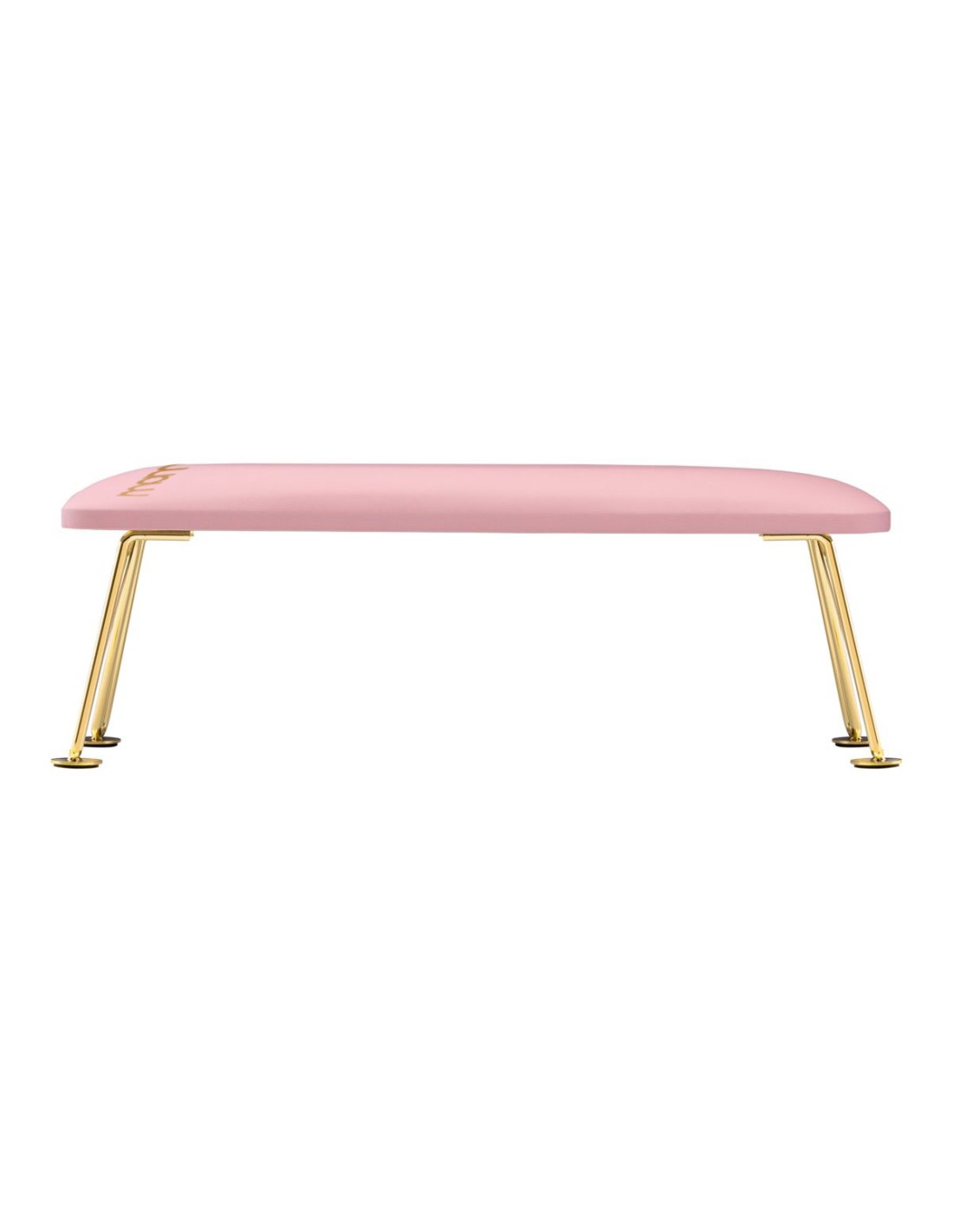 Il supporto professionale per manicure MOMO 6-M è un classico poggiapolsi. Il rivestimento è in ecopelle e le gambe sono in acciaio cromato in oro. Le superfici metalliche sono verniciate. L'altezza corretta del poggiapolsi garantisce una posizione confortevole sia per il cliente che per lo stilista. L'acconciatore non si accovaccia e si tiene dritto, eliminando così il mal di schiena.