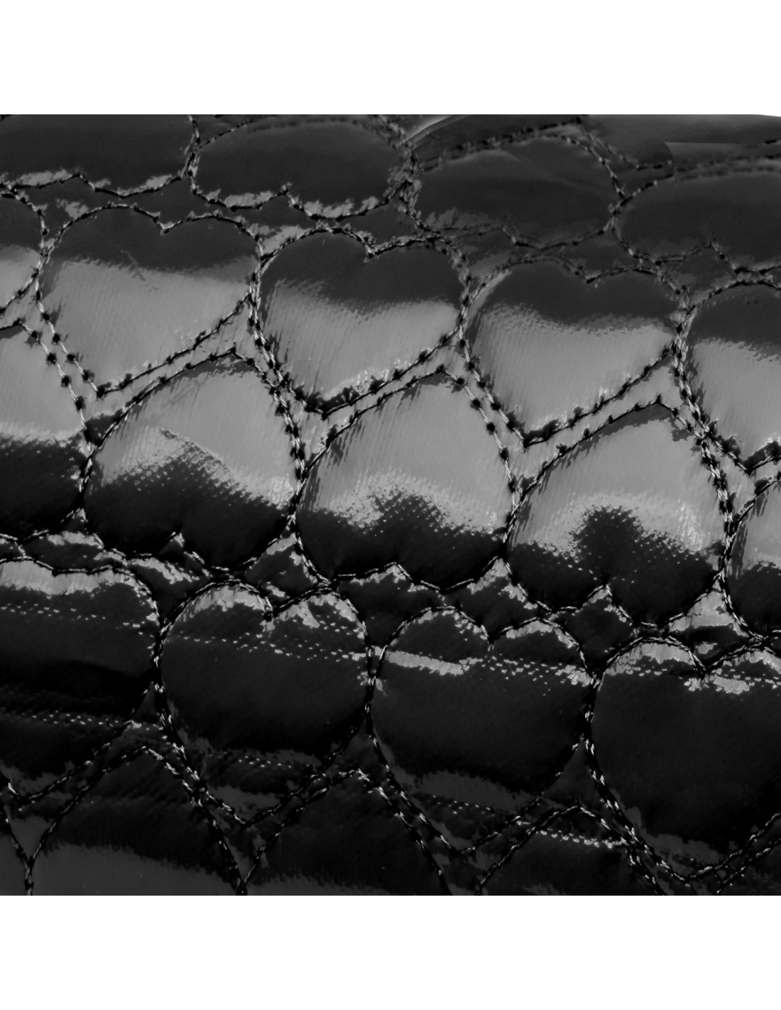 L'elegante copertura nei toni del nero è realizzata in materiale sintetico lucido e decorata con cuori trapuntati. Si distingue per la sua resistenza all'umidità e, inoltre, non trattiene lo sporco; la polvere delle lime per unghie non aderisce al materiale. Mantenerlo pulito è estremamente facile: basta passarlo con una spugna o un panno durante i trattamenti. Si chiude con una cerniera lampo, che ne facilita la rimozione per la sostituzione o per una pulizia più accurata, se necessario.