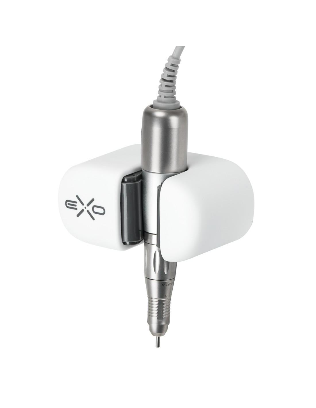 Supporto universale EXO progettato per appendere la testa della fresatrice vicino all'area di lavoro. Può essere incollato alla parete, alla scrivania o all'armadietto podologico nel punto più comodo per rendere l'utilizzo dell'apparecchio il più efficiente possibile. La maniglia protegge l'impugnatura da cadute accidentali, riducendo la probabilità di danni. Realizzata in plastica resistente, garantisce stabilità e durata. L 'installazione rapida è assicurata da uno speciale adesivo con nastro di montaggio, incluso nel set. Il prodotto tiene conto delle questioni igieniche: è facile da pulire e disinfettare. La pinza si adatta alla maggior parte delle testine disponibili sul mercato.